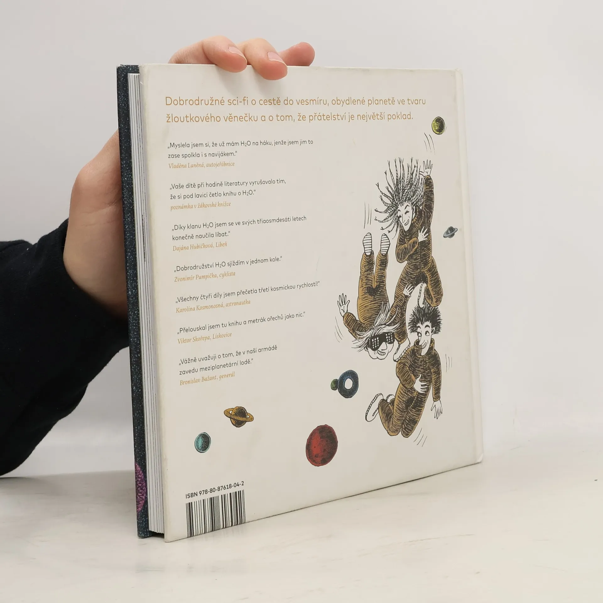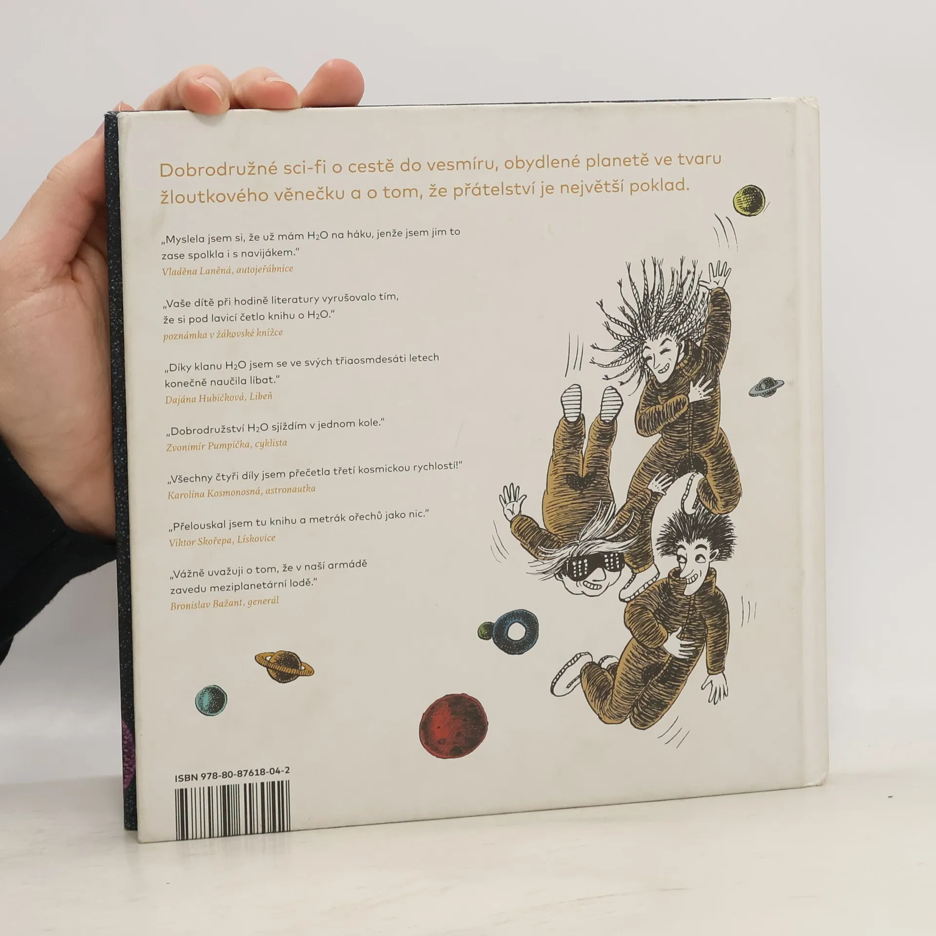 Hubert, Hugo a Ofelie zažívají raketový vzestup. Může být život na planetě ve tvaru žloutkového věnečku? Dokážou kachny způsobit státní převrat? Kdo vynalezl kosmickou loď na parní pohon? O tom všem se dočtete už ve čtvrtém dobrodružství kamarádů Huberta, Huga a Ofélie s názvem H2O a záhada zlaté slzy. Předchozí díly získaly ocenění Zlatá stuha 2018 v kategorii beletrie pro děti či Audiokniha roku 2020, a vyšly také ve Španělsku, ve Slovinsku nebo v Chorvatsku. Knihu opět vytvořila osvědčená autorská dvojice spisovatel Petr Stančík a výtvarnice Galina Miklínová. Čtenáři se mohou těšit na létající dodávku s basetím čumákem, nové rejdy starého dobrého zlosyna profesora Vulpese i šikovné packy mluvícího kuňáka Kuneše. Napínavá sci-fi plná vtipu, zajímavostí a obrázků je vhodná pro čtenáře od 9 do 15 let, ale smějí si ji přečíst i rodiče (pokud byli hodní).