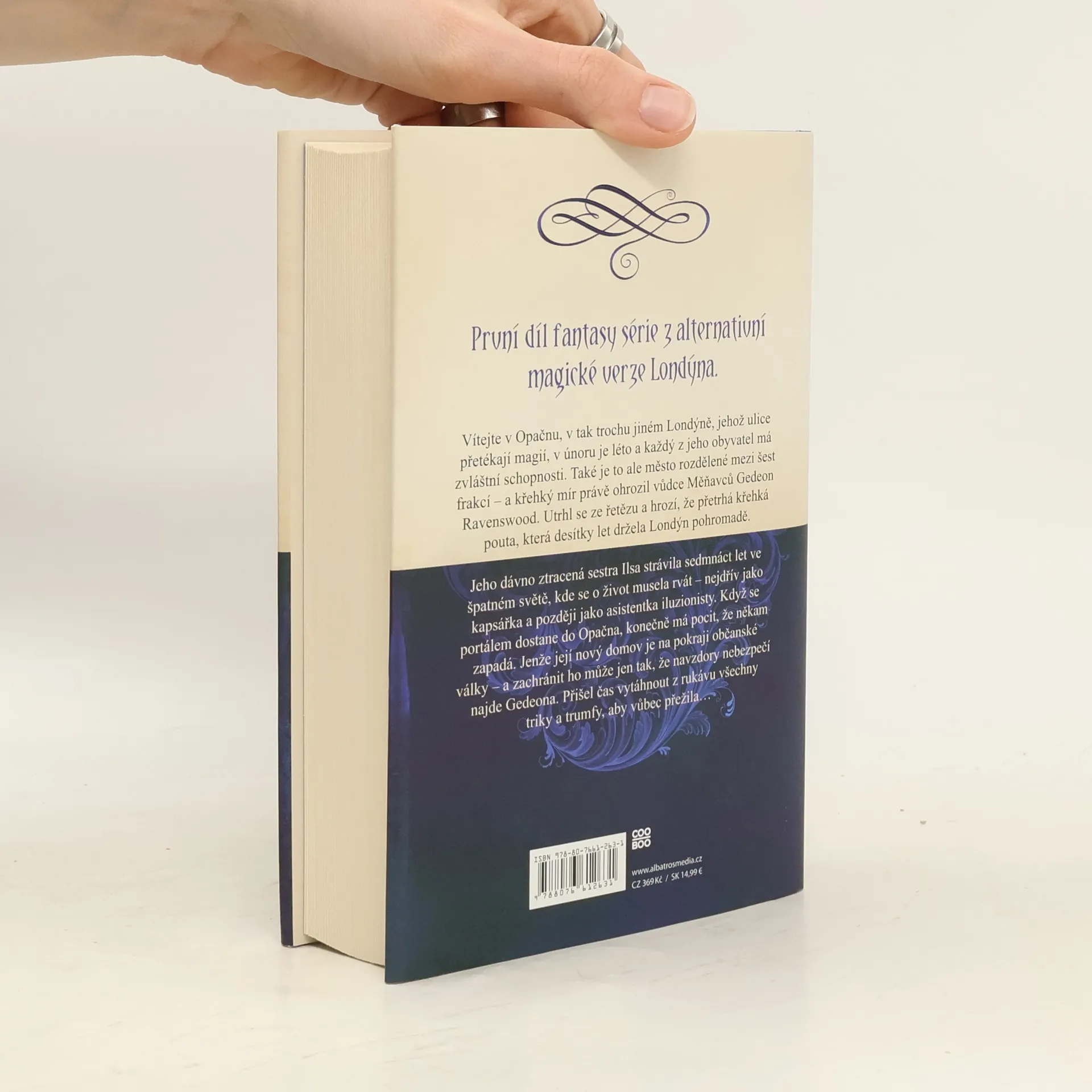 První díl fantasy série z alternativní magické verze Londýna. Vítejte v Opačnu, v Londýně, který není tak úplně stejný jako ten náš. V únoru tu je léto, metro je jeskyní plnou divů a ulice plní magie. Ale London je taky rozdělený na části mezi šest soupeřících frakcí, kdy každá ovládá jedinečné dovednosti - a vůdce Měňavců Gedeon Ravenswood se právě utrhl ze řetězu a hrozí, že přetrhá křehká pouta, která desítky let držela Londýn pohromadě. Ilsa patří mezi Měňavce a 17 let života strávila v tom nesprávném Londýně, kde je skutečná magie považována za dílo ďábla. Rodiče ji po narození opustili, a tak se musela o život rvát - nejdřív jako kapsářka a později na pódiu jako asistentka iluzionisty, kde oslňovala publikum tajným používáním svých schopností. Když Ilsa projde portálem do Opačna, konečně má pocit, že někam patří. Ale její nový domov stojí na pokraji občanské války a Ilsa se ocitne přímo uprostřed dění. Jediný způsob, jak Londýn zachránit, je najít Gedeona, Ilsina dlouho ztraceného bratra, jednoho z posledních členů rodiny, která ji opustila ve špatném světě. Ilsa je ze všech stran obklopena nepřáteli i Měnivci, kteří mají být jejími spojenci, avšak nosí tváře, které jim nepatří. Přišel čas vytáhnout z rukávu všechny triky a trumfy, aby vůbec přežila.