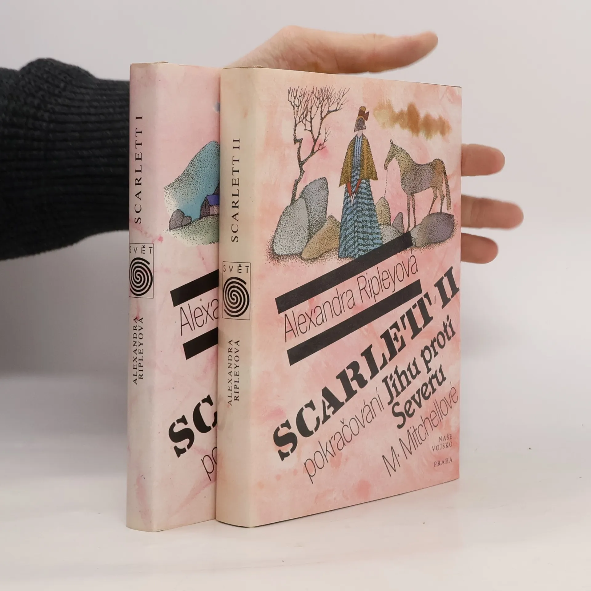 Scarlett : pokračování Jihu proti Severu M. Mitchellové Když se Scarlett při výletě na plachetnici málem utopí a skončí s Rhettem ve vášnivém objetí, je si jistá, že vyhrála. Manžel ji však znovu opustí a Scarlett se rozhodne odjet do Savannah, kde se seznámí se svými dosud neznámýmipříbuznými. A tam ji zasáhne poslední rána - Rhett jí nabízí rozvod jako tečku za jejich vztahem. Tehdy Scarlett poprvé přizná sama sobě porážku a rozhodne se všechno ukončit a začít znovu - už proto, aby nemusela čelit hanbě z rozvodu, když nosí po srdcem Rhettovo dítě... Nový domov nachází v Irsku, rodné zemi svého otce Geralda O‘Hary, ale stejně jako v Atlantě, i tady se dostává do konfliktů se společností svých předků. A přestože se jí podaří zde usadit, stále palčivě pociťuje, že jí něco chybí. Ten pocit je tím horší, že se čas od času v jejím životě mihne Rhett Butler, připomene jí dávno minulou dobu a zjitří rány, které se dosud nezhojily. Ve chvíli, kdy se Scarlett ocitá na osudové životní křižovatce, se Rhett objeví znovu, odhodlaný porazit každého, kdo by chtěl zmařit jeho úmysly... Edice: Svět ; Sv. 37