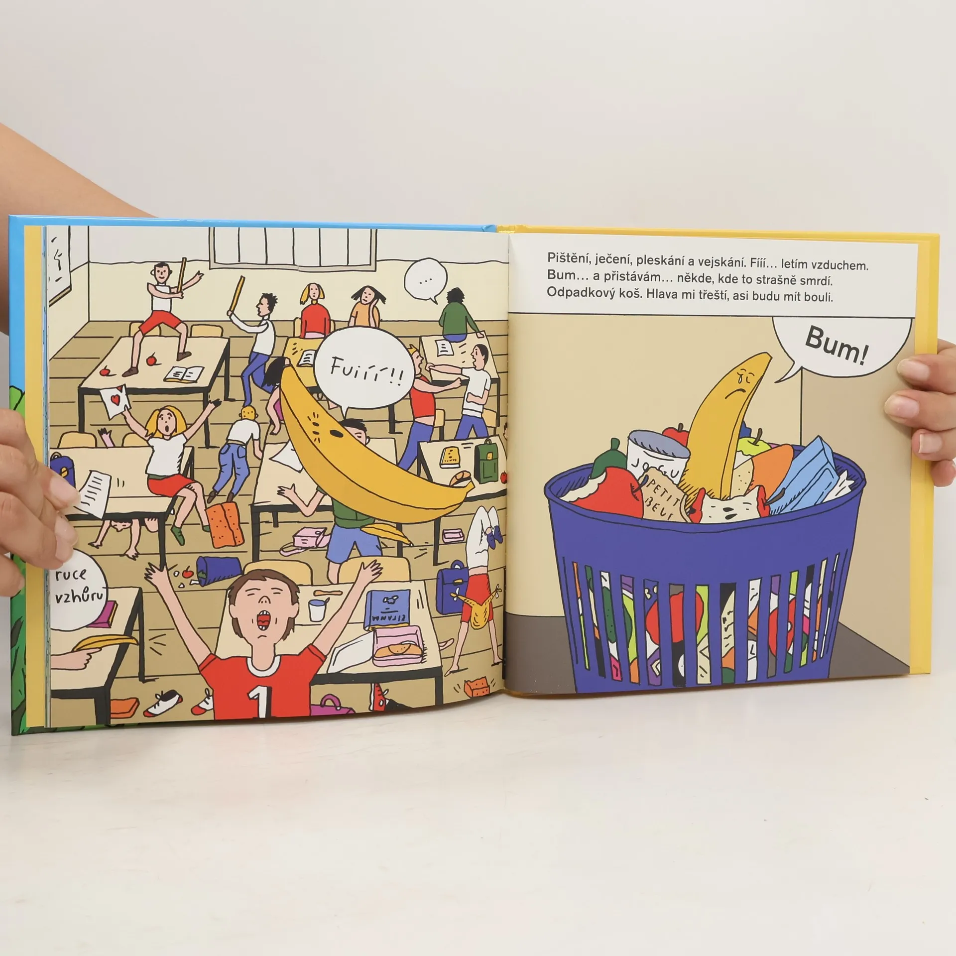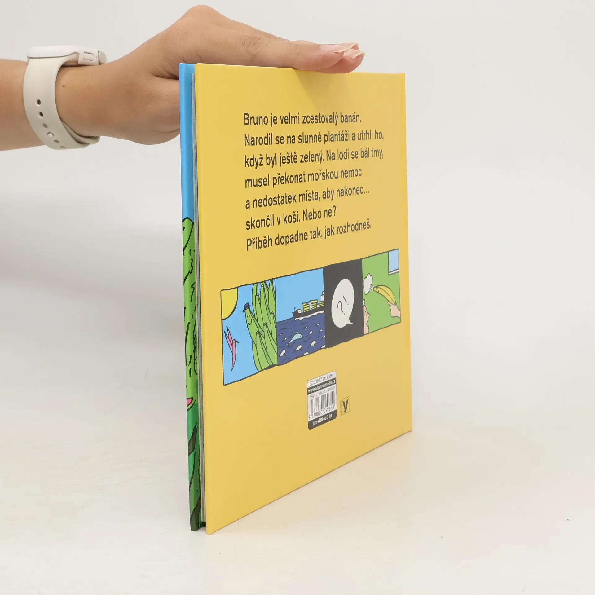 Víš, jak dlouhou cestu musí urazit banán, než ho dostaneš ke svačině? Bruno je velmi zcestovalý banán. Narodil se na slunné plantáži a utrhli ho, když byl ještě zelený. Na lodi se bál tmy, musel překonat mořskou nemoc a nedostatek místa, aby nakonec… skončil v koši. Nebo ne? Příběh dopadne tak, jak rozhodneš.