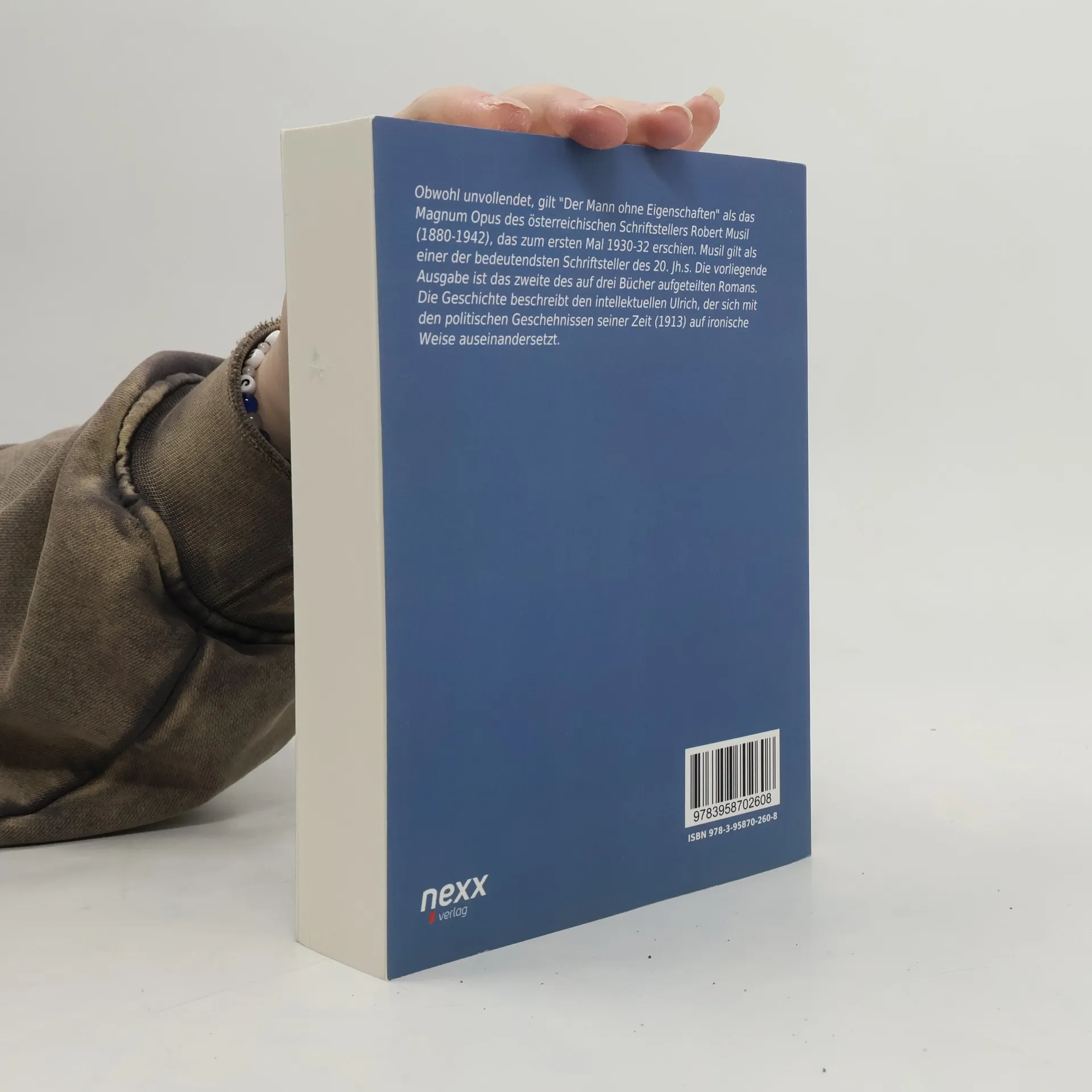 Obwohl unvollendet, gilt \"Der Mann ohne Eigenschaften\" als das Magnum Opus des österreichischen Schriftstellers Robert Musil (1880-1942), das zum ersten Mal 1930-32 erschien. Musil gilt als einer der bedeutendsten Schriftsteller des 20. Jh.s. Die vorliegende Ausgabe ist das zweite des auf drei Bücher aufgeteilten Romans. Die Geschichte beschreibt den intellektuellen Ulrich, der sich mit den politischen Geschehnissen seiner Zeit (1913) auf ironische Weise auseinandersetzt.