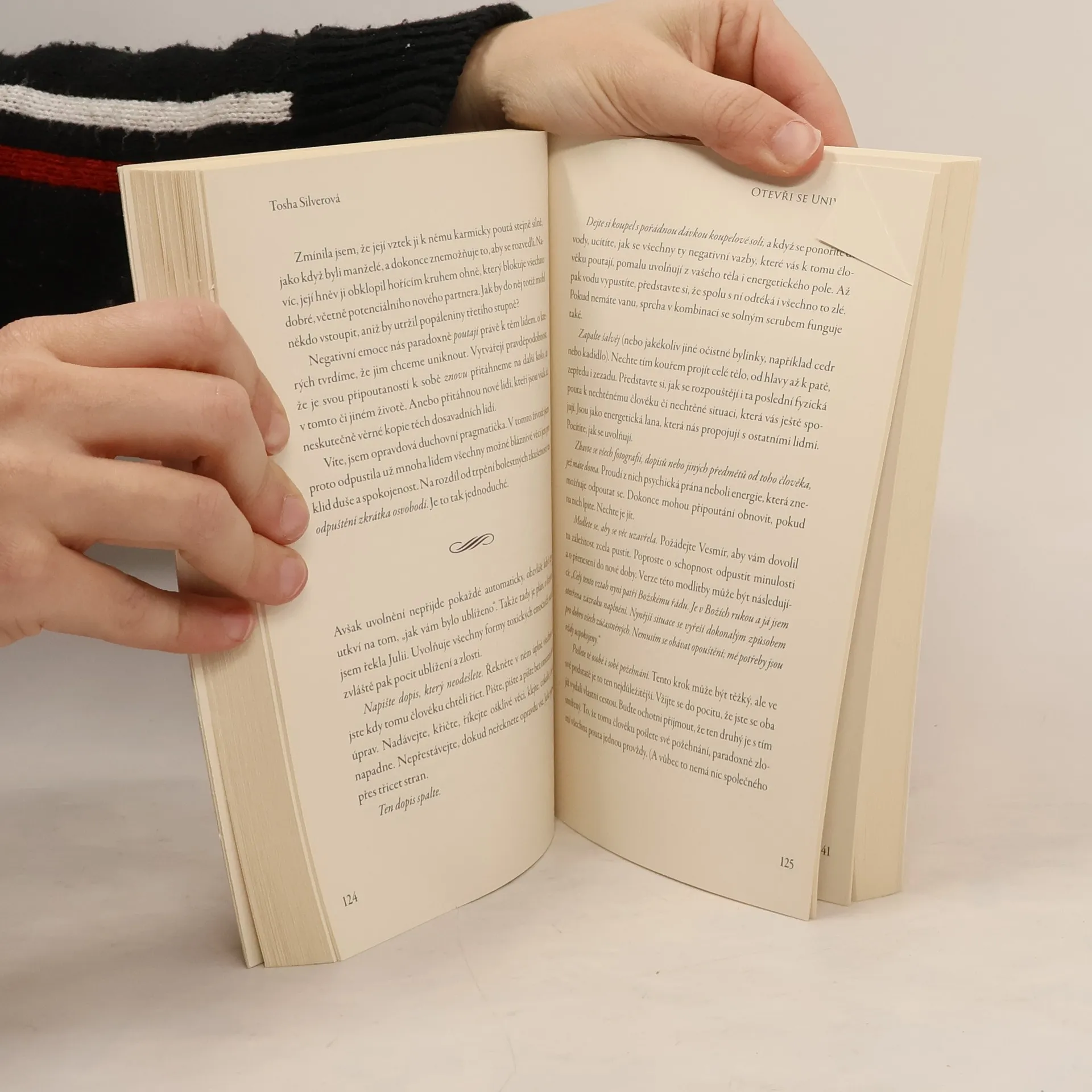 Jak se nechat vést Boží moudrostí I duchovně zaměření lidé mají často problém plně důvěřovat Boží moudrosti a nechat se jí vést. Tosha Silver, uznávaná astroložka s mnohaletou praxí předkládá sbírku duchovních lekcí, příběhů a myšlenek o božských intervencích v našem životě. Tato nádherně napsaná a zábavná kniha nás učí, jak žít smysluplně a v souladu se silou lásky. „Co když Božská moudrost neustále osvětluje značky na cestách, abychom jí věnovali pozornost? Co když skutečně existuje nějaký Nejvyšší řídící princip s nespoutaným smyslem pro humor? Co když každý z nás má svého horlivého vnitřního vůdce, který nám s láskou píše dopisy, jež však často ani neotevřeme?“ Ať si to uvědomujeme nebo ne, všichni v životě dennodenně zažíváme dotek Božské lásky. Tosha Silver má za sebou dvacetipětiletou astrologickou a poradenskou praxi, během níž radila desetitisícům lidí z celého světa. Díky tomu si uvědomila, že téměř všichni z nás mají podobné problémy: „Jak si mám přestat dělat starosti? Jak se mohu cítit v bezpečí? Proč si připadám tak osaměle?“ a často také „Kdo opravdu jsem?“ Pro ty, kteří jsou vášnivě duchovní a přesto úsměvně skeptičtí, napsala Otevři se Univerzu. Tato veselá kniha plná moudrosti a osvěžujících pohledů na věc ve čtenáři probudí uvolněnou a důvěřivou otevřenost, aby mohl objevit odpovědi na velké životní otázky, které se spontánně vynořují.