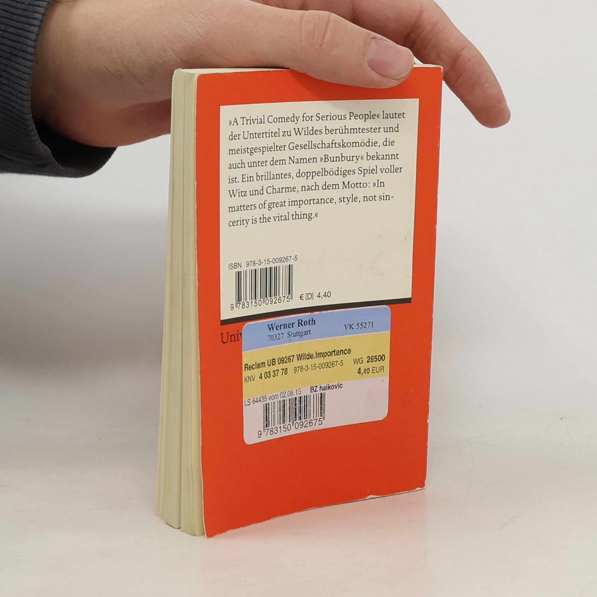 Englische Literatur in Reclams Roter Reihe: das ist der englische Originaltext – mit Worterklärungen am Fuß jeder Seite, Nachwort und Literaturhinweisen. »A Trivial Comedy for Serious People« lautet der Untertitel zu Wildes berühmtester und meistgespielter Gesellschaftskomödie, die auch unter dem Namen »Bunbury« bekannt ist. Ein brillantes, doppelbödiges Spiel voller Witz und Charme, nach dem Motto: »In matters of great importance, style, not sincerity is the vital thing.« Englische Lektüre: Niveau C1 (GER)