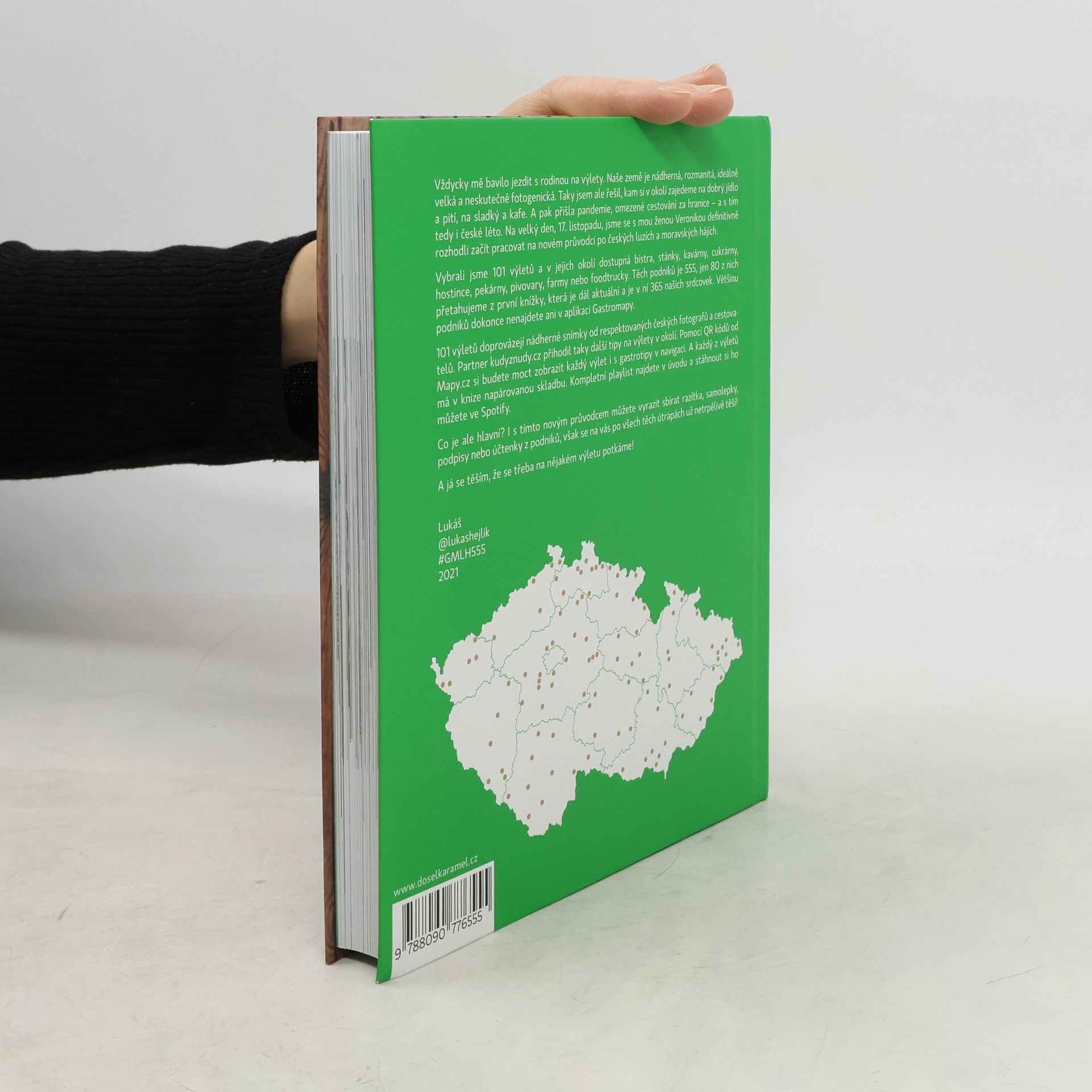 Autor v knize 555 – Výlety s Gastromapou Lukáše Hejlíka vyráží na 100 nádherných míst po celé České republice a mapuje v jejich okolí dostupné podniky, kam můžete zajít na fajn jídlo, kafe, sladký, pivo nebo třeba večerní drink. A co všechno kromě 555 gastrotipů pro vás Lukáš vysype ze svého cestovatelského báglu? Každý výlet popíše a vždy ho doprovodí fotografií od respektovaných českých fotografů a cestovatelů. Partner Kudyznudy.cz přihodí další možnosti, kam se v dané lokalitě podívat. Pomocí QR kódu Mapy.cz si budete moct stáhnout celý výlet i Lukášovy tipy do navigace. A mimochodem, každý z výletů bude mít v knize napárovanou skladbu, kterou lze načíst v aplikaci Spotify. A co je hlavní? I s novou knihou můžete vyrazit sbírat razítka ze svých návštěv, však všechny ty skvělé podniky se na vás už netrpělivě těší! Gastroturistika může začít!