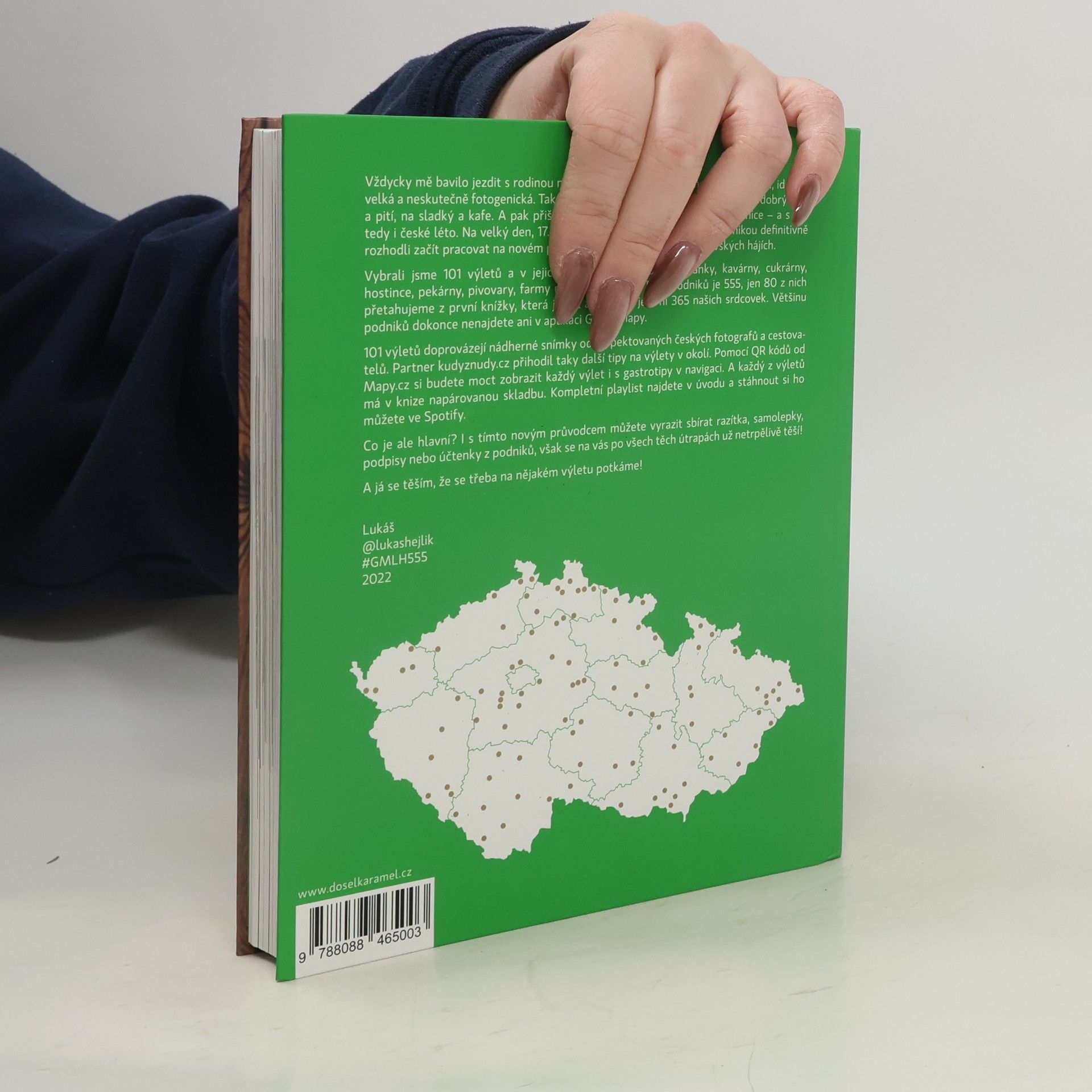 Autor v knize 555 – Výlety s Gastromapou Lukáše Hejlíka vyráží na 100 nádherných míst po celé České republice a mapuje v jejich okolí dostupné podniky, kam můžete zajít na fajn jídlo, kafe, sladký, pivo nebo třeba večerní drink. A co všechno kromě 555 gastrotipů pro vás Lukáš vysype ze svého cestovatelského báglu? Každý výlet popíše a vždy ho doprovodí fotografií od respektovaných českých fotografů a cestovatelů. Partner Kudyznudy.cz přihodí další možnosti, kam se v dané lokalitě podívat. Pomocí QR kódu Mapy.cz si budete moct stáhnout celý výlet i Lukášovy tipy do navigace. A mimochodem, každý z výletů bude mít v knize napárovanou skladbu, kterou lze načíst v aplikaci Spotify. A co je hlavní? I s novou knihou můžete vyrazit sbírat razítka ze svých návštěv, však všechny ty skvělé podniky se na vás už netrpělivě těší! Gastroturistika může začít!