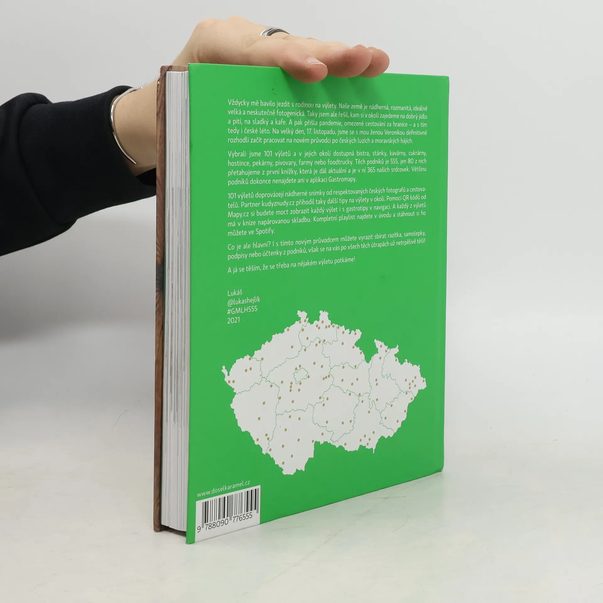 Autor v knize 555 – Výlety s Gastromapou Lukáše Hejlíka vyráží na 100 nádherných míst po celé České republice a mapuje v jejich okolí dostupné podniky, kam můžete zajít na fajn jídlo, kafe, sladký, pivo nebo třeba večerní drink. A co všechno kromě 555 gastrotipů pro vás Lukáš vysype ze svého cestovatelského báglu? Každý výlet popíše a vždy ho doprovodí fotografií od respektovaných českých fotografů a cestovatelů. Partner Kudyznudy.cz přihodí další možnosti, kam se v dané lokalitě podívat. Pomocí QR kódu Mapy.cz si budete moct stáhnout celý výlet i Lukášovy tipy do navigace. A mimochodem, každý z výletů bude mít v knize napárovanou skladbu, kterou lze načíst v aplikaci Spotify. A co je hlavní? I s novou knihou můžete vyrazit sbírat razítka ze svých návštěv, však všechny ty skvělé podniky se na vás už netrpělivě těší! Gastroturistika může začít!