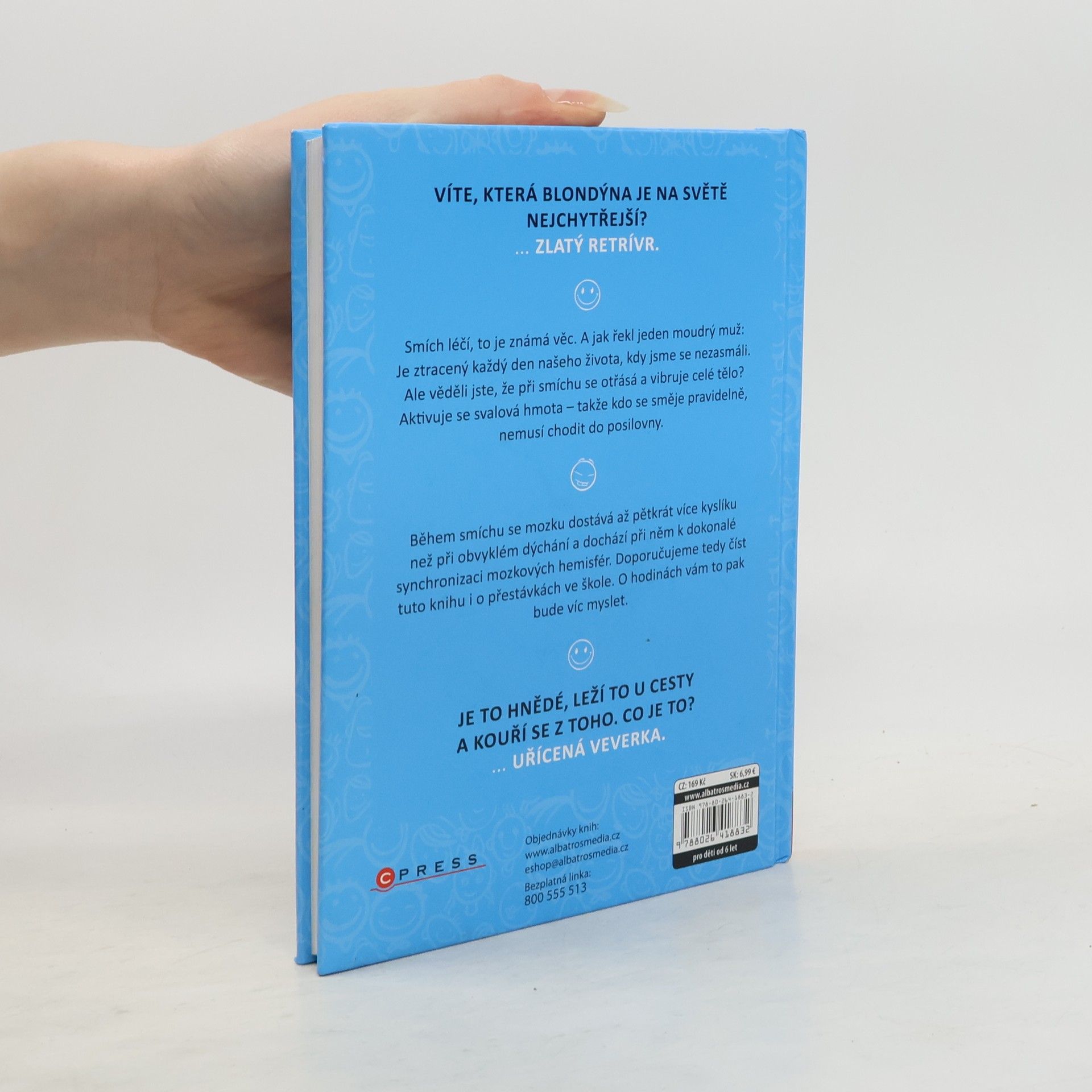 Ilustrovaná kniha plná vtipů udělá radost všem. Ať už se začtete do vtipů o Pepíčkovi, ze školy, o prarodičích, z pohádek nebo dalších, pořádně se zasmějete a budete mít dobrou náladu. Věděli jste, že během smíchu se mozku dostává až 5x více kyslíku než při obvyklém dýchání a dochází při něm k dokonalé synchronizaci mozkových hemisfér? Doporučujeme tedy číst tuto knihu i o přestávkách ve škole. O hodinách vám to pak bude víc myslet.