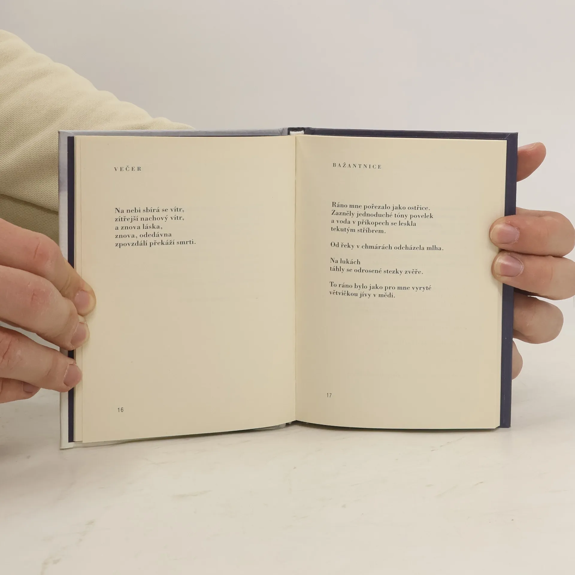 Moravský básník Jan Skácel se svým dílem zapsal do srdcí čtenářů. Básnická sbírka Hodina mezi psem a vlkem pochází z tvorby 60. let, stejně jako Smuténka či Metličky. Po vydání těchto děl byl básník zahnán do politického ústraní. Za své dílo byl oceněn až po roce 1989. Najděte dva kusy dřeva/ a zkuste tlouci polínkem o polínko./ Tak jsem to dělal doma, / když jsem vyklepával hodinu mezi psem a vlkem./ Musíte klepat do rytmu./ Musíte vyšívat tím dřevem./ Snad se vám podaří/ probudit v sobě hvozd.