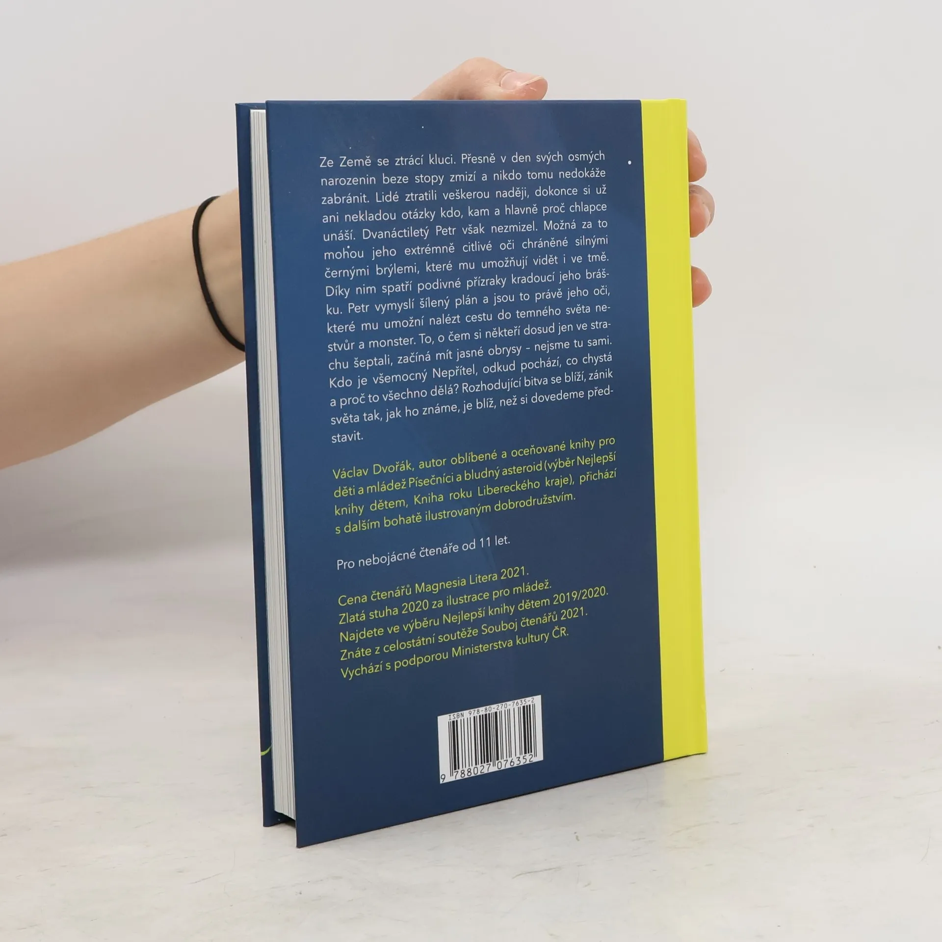 Ze Země se ztrácí kluci. Přesně v den svých osmých narozenin beze stopy zmizí a nikdo tomu nedokáže zabránit. Lidé ztratili veškerou naději, dokonce si už ani nekladou otázky kdo, kam a hlavně proč chlapce unáší. Dvanáctiletý Petr však nezmizel. Možná za to mohou jeho extrémně citlivé oči chráněné silnými černými brýlemi, které mu umožňují vidět i ve tmě. Díky nim spatří podivné přízraky kradoucí jeho brášku. Petr vymyslí šílený plán a jsou to právě jeho oči, které mu umožní nalézt cestu do temného světa nestvůr a monster. To, o čem si někteří dosud jen ve strachu šeptali, začíná mít jasné obrysy – nejsme tu sami. Kdo je všemocný Nepřítel, odkud pochází, co chystá a proč to všechno dělá? Rozhodující bitva se blíží, zánik světa tak, jak ho známe, je blíž, než si dovedeme představit.Václav Dvořák, autor oblíbené a oceňované knihy pro děti a mládež Písečníci a bludný asteroid (výběr Nejlepší knihy dětem, Kniha roku Libereckého kraje), přichází s dalším bohatě ilustrovaným dobrodružstvím. Pro nebojácné čtenáře od 11 let.