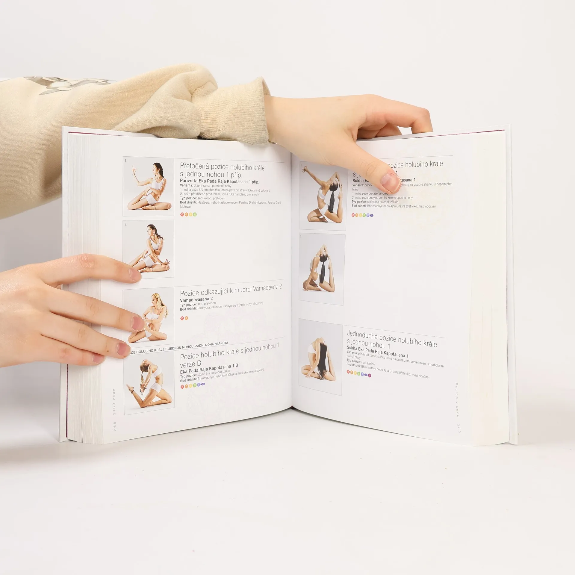 2100 ásan je nebývalá kolekce jógových pozic, stejně tak i umělecké dílo zobrazující krásu a vypracovanost lidského těla při cvičení jógy. Každá z inspirujících fotografií představuje zkušeného jogína v pozici dovedené k dokonalosti. Pozice jsou rozděleny do devíti hlavních kategorií - stojné pozice, pozice v sedě, pozice zaměřené na střed těla, pozice na čtyřech, záklony, balance na pažích, obrácené pozice, pozice na břiše, pozice na zádech - a dále seřazeny do skupin ásan, které obvykle postupují od nejsnažšího provedení k náročnějším variantám. Každá z fotografií je opatřena názvem pozice v češtině a v sanskrtu, alternativními názvy pozice, pokud existují, a popisem různých variant každé pozice, bodu drišti (místo, kam by měla směřovat pozornost) a čakrami, které pozice ovlivňuje. Tvůrcem i fotografem této úžasné kolekce je odborný lektor jógy Daniel Lacerda. Individuálně trénoval a vybral víc než 40 zkušených modelek a modelů ze svého týmu. V úvodu ke knize předkládá podstatné informace, stěžejní pro všechna jogová cvičení, včetně základní historie jógy, úvodu do jógových súter, významu dechu udžají a jak ho používat, vysvětlení pojmů bandha, drišti a čakra, jak meditovat a relaxovat a blahodárné pozice (i varování) týkající se osmi stavů, jako například astma, těhotenství či vysoký krevní tlak. Tato kniha je dokonalým doplňkem cvičení i životního stylu dnešního moderního jogína.