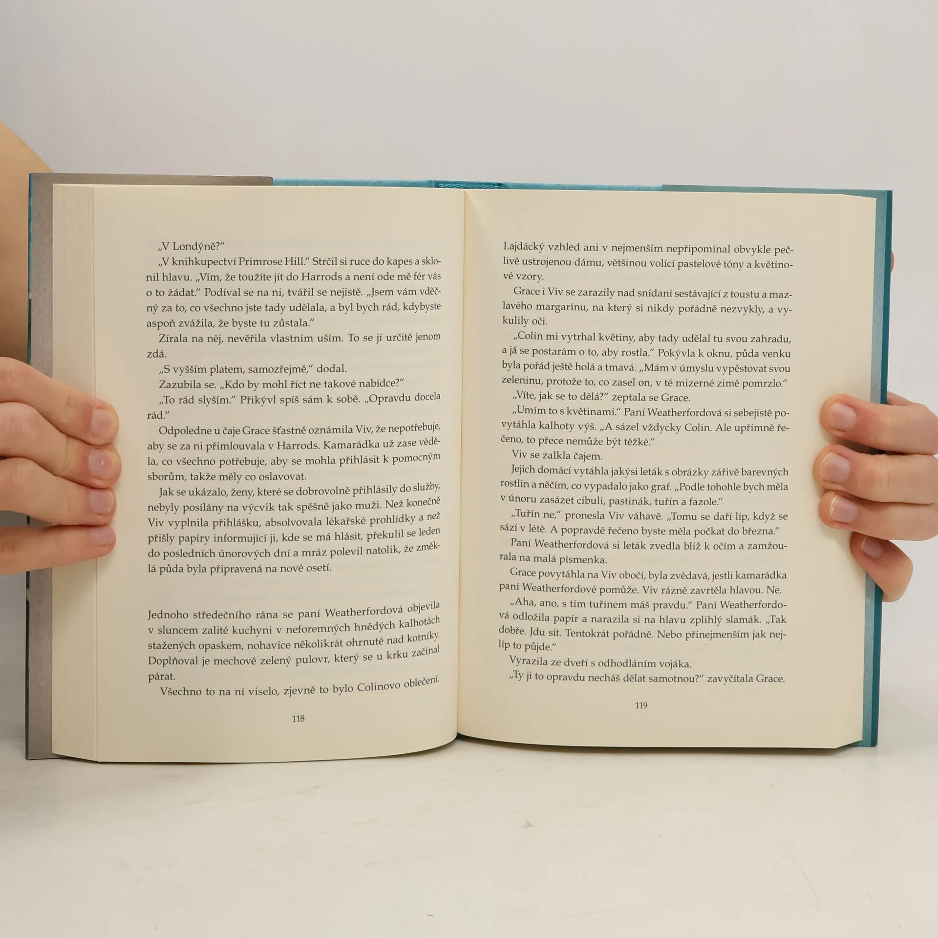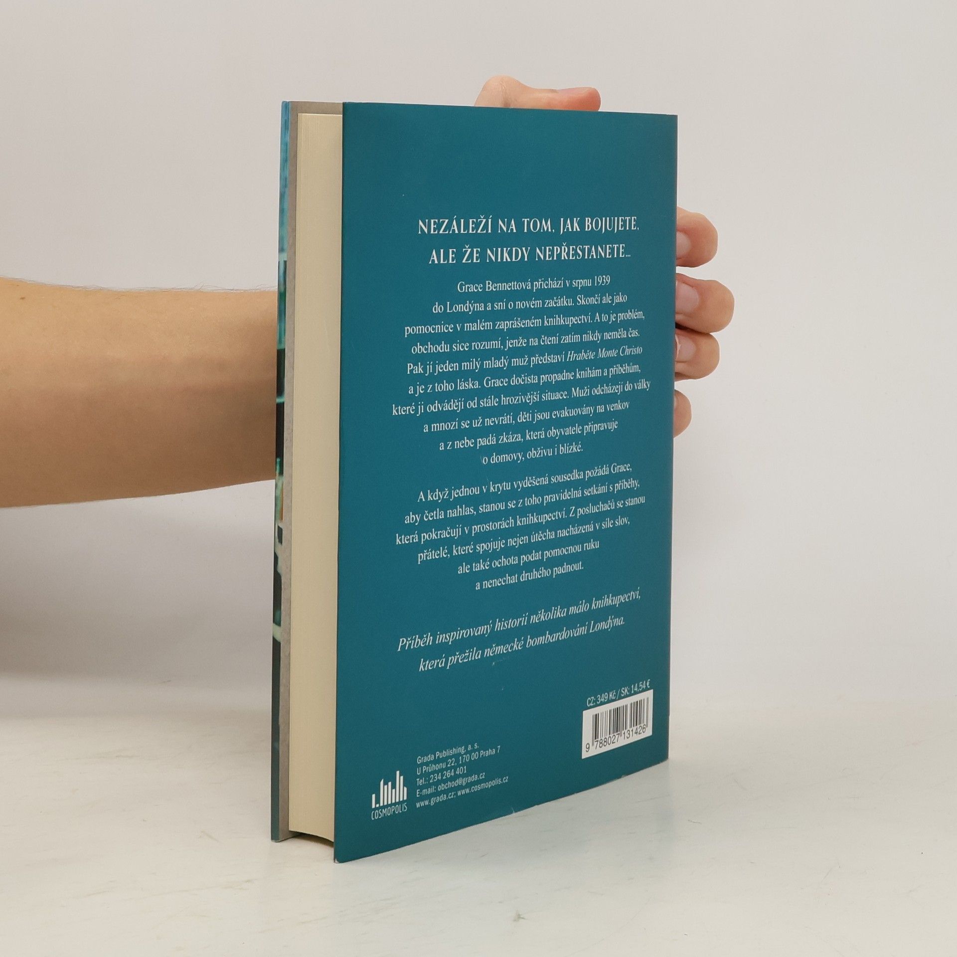 Grace Bennettová přichází v srpnu 1939 do Londýna a sní o novém začátku. Skončí ale jako pomocnice v malém zaprášeném knihkupectví. A to je problém – obchodu sice rozumí, jenže na čtení zatím nikdy neměla čas. Pak jí jeden milý mladý muž představí Hraběte Monte Christo a je z toho láska. Grace dočista propadne knihám a příběhům, které ji odvádějí od stále hrozivější situace. Muži odcházejí do války a mnozí se už nevrátí, děti jsou evakuovány na venkov a z nebe padá zkáza, která obyvatele připravuje o domovy, obživu i blízké. A když jednou v krytu vyděšená sousedka požádá Grace, aby četla nahlas, stanou se z toho pravidelná setkání s příběhy, která pokračují v prostorách knihkupectví. Z posluchačů se stanou přátelé, které spojuje nejen útěcha nacházená v síle slov, ale také ochota podat pomocnou ruku a nenechat druhého padnout.