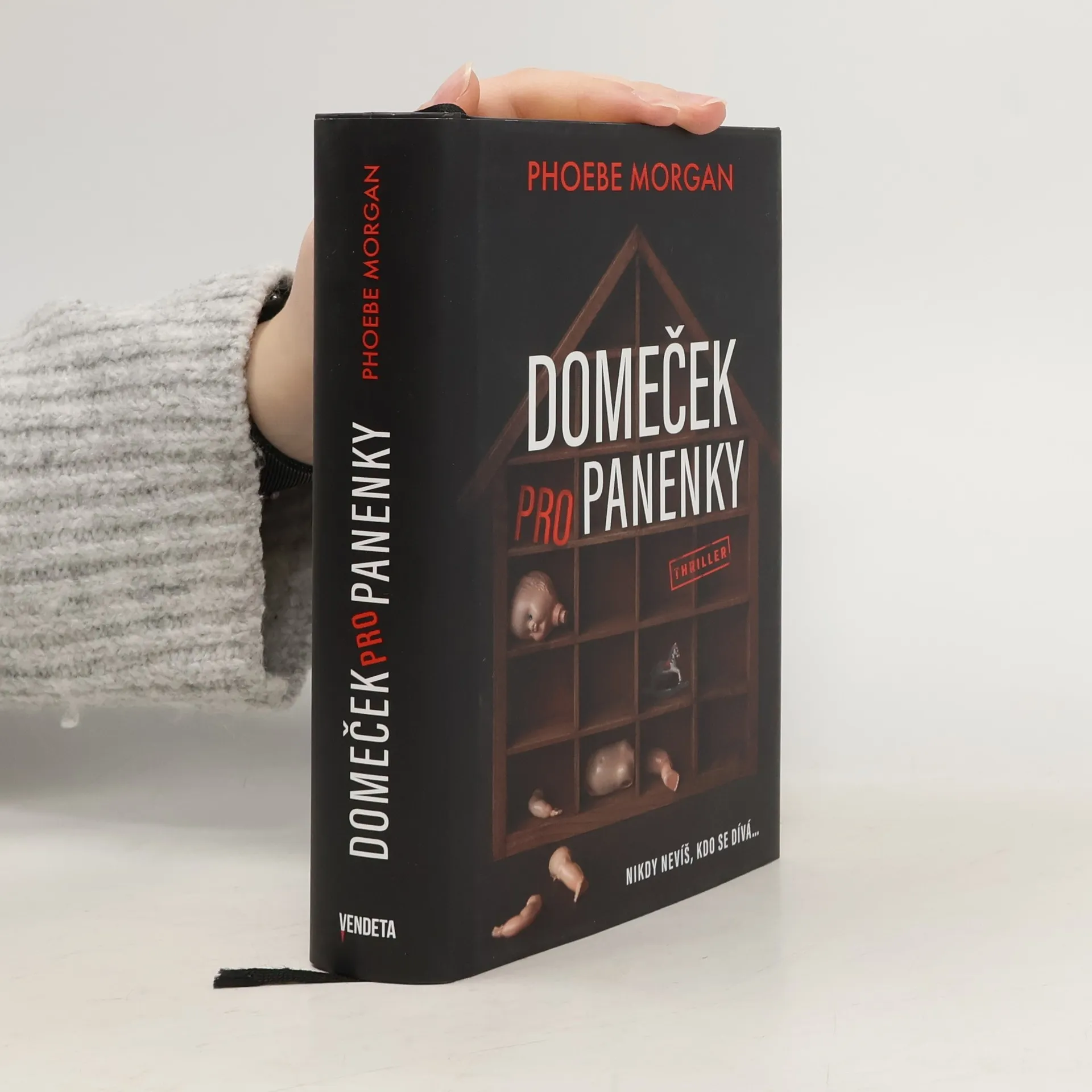Nikdy nevíte, kdo se dívá… Zvenku možná vypadá Corinnin život jako dokonalá idylka, ale ve skutečnosti má po třech nevydařených pokusech o umělé oplodnění poslední šanci přivést na svět vlastní dítě. Když tedy jednoho dne najde před dveřmi svého bytu malý kousek domečku pro panenky, považuje to za znamení. Potom se však začnou objevovat další kousky a Corinne si začíná uvědomovat, že jí připadají až příliš povědomé. Někdo ví o jejím miniaturním houpacích koníkovi i o panence v červených sametových šatech. Někdo byl v jejím domě… Odkud znají cizí lidé tolik detailů z jejího života? Jak dlouho už ji sledují? A na co čekají…? Ponořte se do děje strhujícího psychologického thrilleru, který vás překvapí nečekaným rozuzlením.