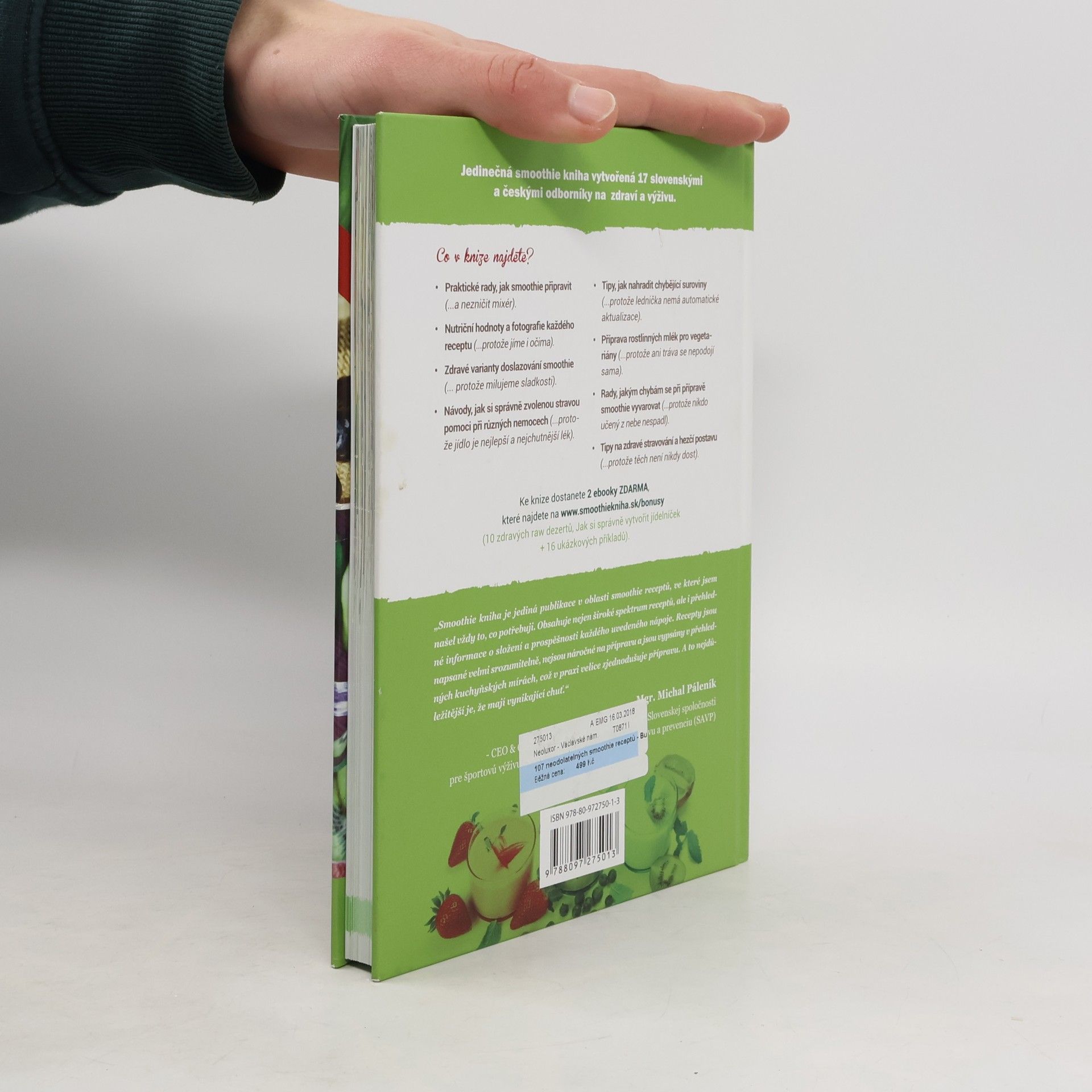 Výživoví poradci doporučují alespoň 5 porcí čerstvého ovoce a zeleniny denně. Ruku na srdce dopřáváte si to? Ne? Ale i tak dobře víte, že to vaše tělo potřebuje. Smoothie jsou super způsob, jak si zajistit právě tuto dávku, kterou tělo potřebuje. Jsou to bomby plné vitamínů, minerálů a antioxidantů. Každé chutná jinak a přitom božsky. Sedmnáct českých a slovenských odborníků se rozhodlo dát dohromady knihu se 107 nejlepšími smoothie recepty pro pevné zdraví, krásnou pleť, štíhlou postavu a dobré trávení. Co v knize najdete? *Praktické rady, jak smoothie připravit (a nezničit mixér) *Nutriční hodnoty a fotografie každého receptu (protože jíme i očima) *Zdravé varianty doslazení smoothie (protože máme rádi sladkosti) *Návody, jak si zdravě zvolenou stravou pomoci při nejrůznějších chorobách (protože jídlo je nejlepší a nejchutnější lék) *Tipy, jak nahradit chybějící suroviny (protože lednička nemá automatické aktualizace) *Příprava rostlinných mlék pro vegany (protože ani tráva se nepodojí sama) *Tipy pro zdravé stravování a krásnější postavu (protože těch není nikdy dost).
