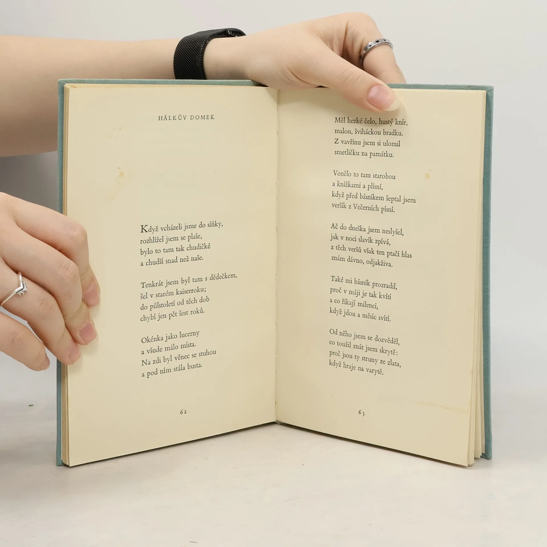 Seifertova sbírka básní, naplněná tesklivými vzpomínkami na dětství a mládí. Každá z těchto vzpomínek na dobu, kdy proletářský chlapec vyrůstal v sešlém velkoměstském činžáku s pavlačemi, pod nimiž dýmaly projíždějící vlaky, je svědectvím básníkova vyspělého slovesného mistrovství. Pocity bezpečí v teplé maminčině domácnosti, veselé, když bylo mamince dobře, bývaly přečasto střídány dětskými zmatky, když synek vytušil, že maminka skrývá nějakou bolest nebo stesk. Básně: U okna Večerní píseň Vlaky Maminčina kytice Ukolébavka Píseň První dopis mamince Nádraží Mlýnek na kávu Pavučina Hra v kuličky Všední den Večer na pavlači Tatínkova dýmka Petrolejová lampa Nůž Cukrářský krám Motýli Karlův Týn Růže pro slečnu učitelku Skleněný džbán Okarina Dědečkův pohřeb Hálkův domek Slečna ze čtvrtého Housle Vějíř Maminčino zrcátko Kytička fialek Prstýnek po mamince Krabice na čaj Píseň Hrdličky Domov