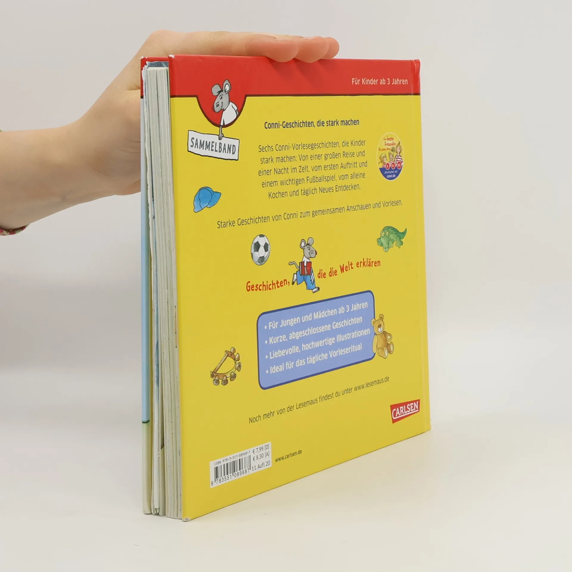 Sechs Conni-Vorlesegeschichten, die Kinder stark machen: Von einer großen Reise und einer Übernachtung im Zelt, vom ersten Auftritt und einem wichtigen Fußballspiel, vom alleine Kochen und einem Ausflug auf den Bauernhof. Mit Conni kannst du täglich etwas Neues entdecken! Starke Geschichten von Conni zum gemeinsamen Anschauen und Vorlesen. Für Jungen und Mädchen ab 3 Jahren Kurze, abgeschlossene Geschichten Liebevolle, hochwertige Illustrationen Ideal für das tägliche Vorleseritual Mit den beliebten Lesemaus-Geschichten: Conni geht zelten Conni macht Musik Connis erster Flug Conni auf dem Bauernhof Conni spielt Fußball Conni backt Pizza