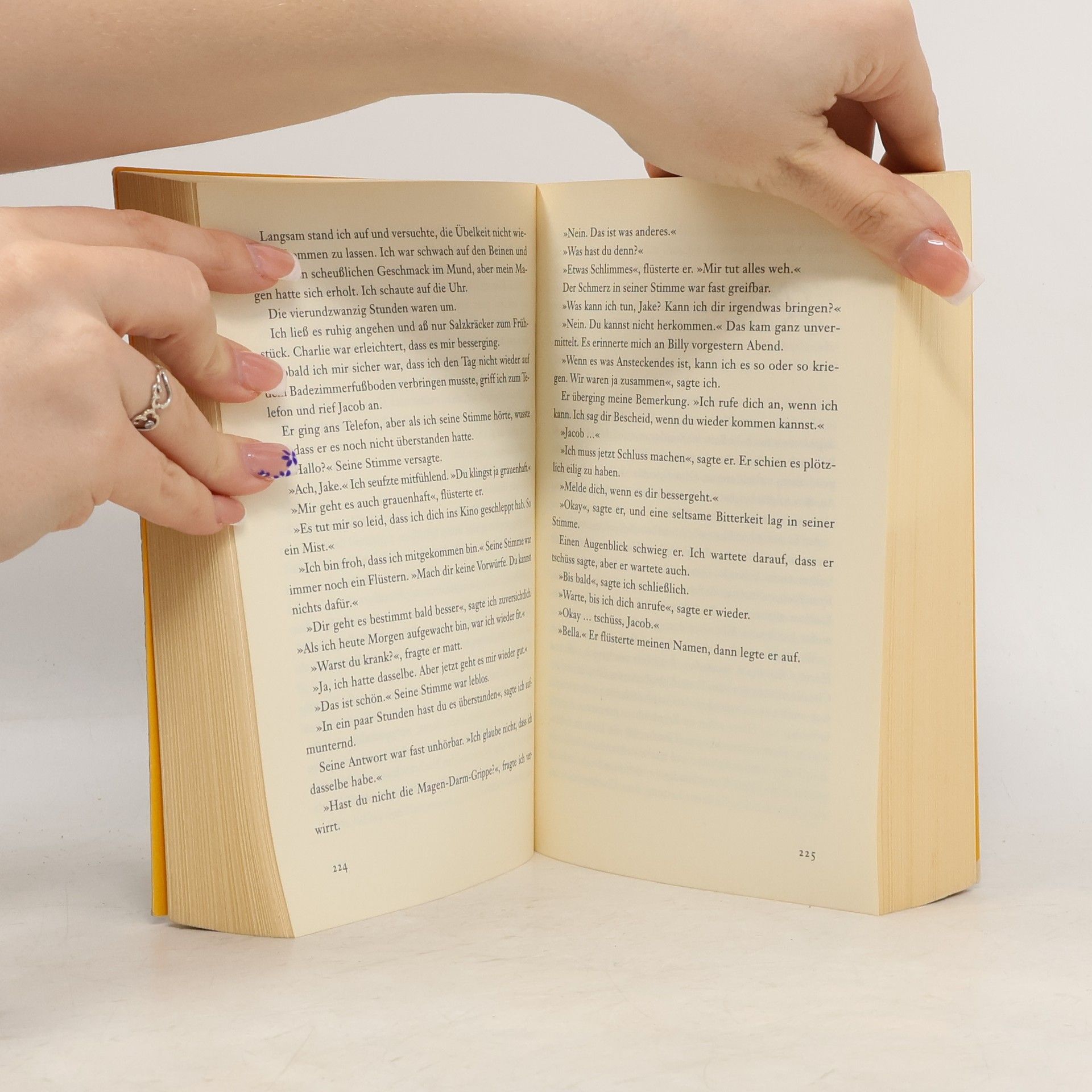 Für immer mit Edward zusammen zu sein - Bellas Traum scheint wahr geworden! Kurz nach ihrem 18. Geburtstag findet er jedoch ein jähes Ende, als ein kleiner, aber blutiger Zwischenfall ihr fast zum Verhängnis wird. Edward hat keine andere Wahl: Er muss sie verlassen. Für immer. Bella zerbricht beinahe daran, einzig die Freundschaft zu Jacob gibt ihr die Kraft weiterzuleben. Da erfährt Bella, dass Edward in höchster Gefahr schwebt. Und sein Schicksal liegt in ihren Händen. Sie muss zu ihm, rechtzeitig, bis zur Mittagsstunde ...