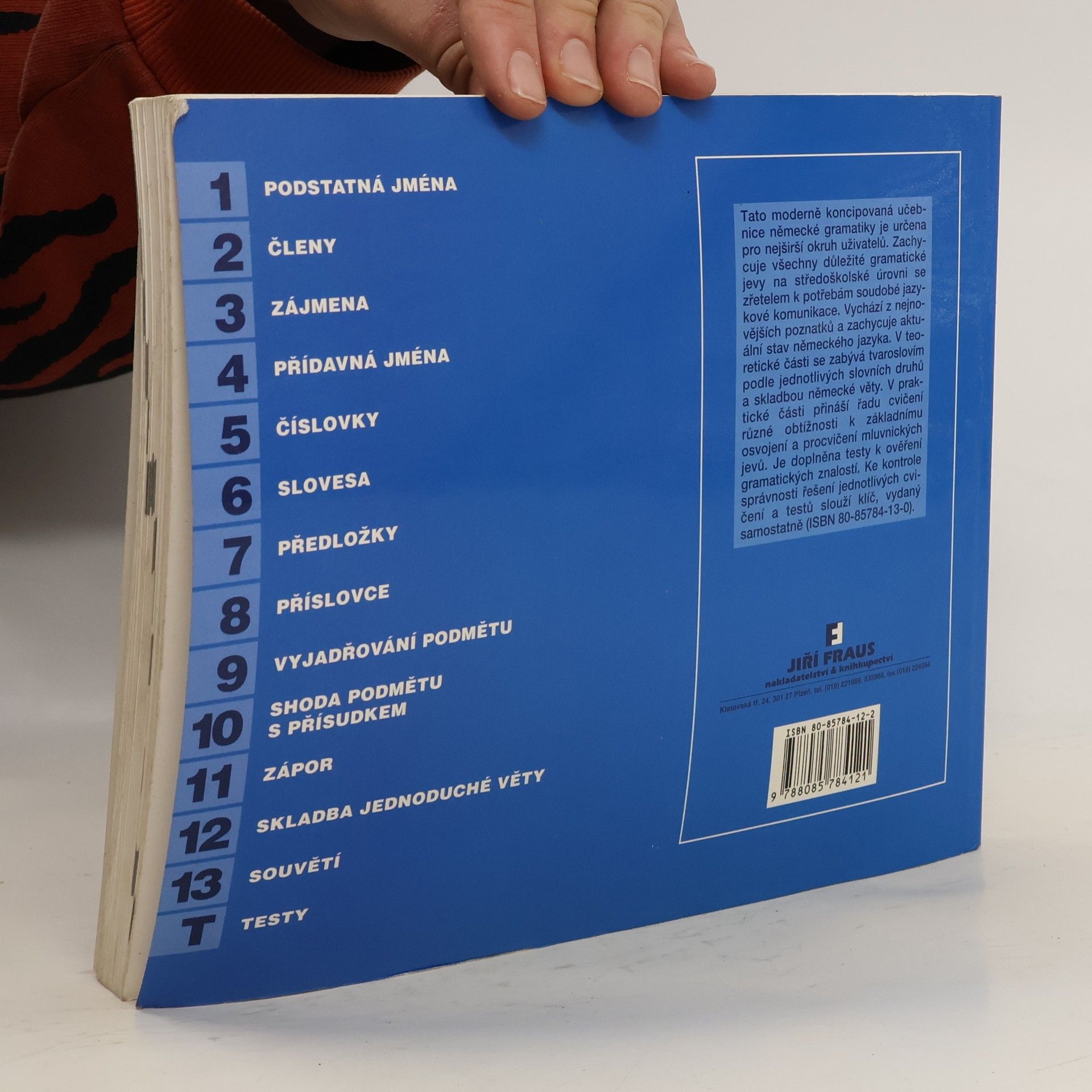 Tato moderně koncipovaná učebnice německé gramatiky je určena pro nejširší okruh uživatelů. Zachycuje všechny důležité gramatické jevy na středoškolské úrovni se zřetelem k potřebám soudobé jazykové komunikace. Vychází z nejnovějších poznatků a zachycuje aktuální stav německého jazyka. V teoretické části se zabývá tvaroslovím podle jednotlivých slovních druhů a skladbou německé věty. V praktické části přináší řadu cvičení různé obtížnosti k základnímu osvojení a procvičení mluvnických jevů. Je doplněna testy k ověření gramatických znalostí. Ke kontrole správnosti řešení jednotlivých cvičení a testů slouží klíč, vydaný samostatně.... celý text