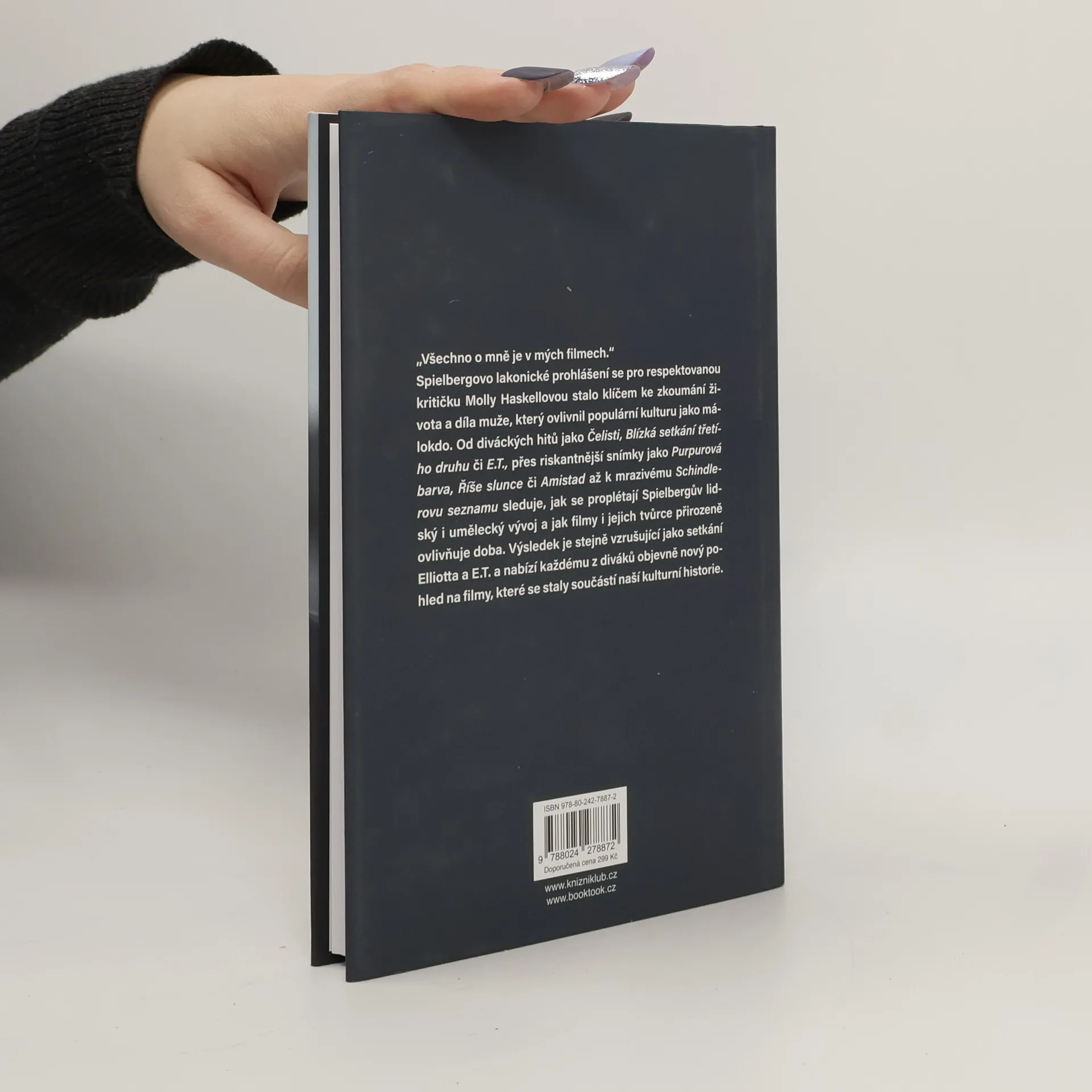 Spielbergovo dílo je ohromující. Jeho stopy producenta či režiséra najdeme všude – ve videohrách, v televizi i v hraném filmu. Za desítky let natáčení filmů potěšil geniální režisér více lidí než kterýkoli filmař v dějinách. Získal si nejen diváky, ale jedním, dvěma či třemi zaručeně dostal i toho nejzatvrzelejšího kritika. Podle některých už nikdo nepřekonal jeho rané filmy, zaměřené na dětství – Blízká setkání a E.T. Pro jiné jsou Čelisti, Dobyvatelé ztracené archy a Jurský park nejlepšími dobrodružnými filmy, jaké byly kdy natočeny, a dokonce i jejich slabší odvozeniny a pokračování postupem času získávají revizionistickou poctu „nedoceněného skvostu“. A dalším přinášejí větší a velmi odlišný druh potěšení jeho pozdější, temnější filmy – Říše slunce, Schindlerův seznam, A.I., Minority Report a melancholií zabarvený Chyť mě, když to dokážeš. Kniha uznávané kritičky Molly Haskellové rozebírá nejen profesní dráhu Stevena Spielberga, ale na jejím pozadí odkrývá i jeho osobní život.