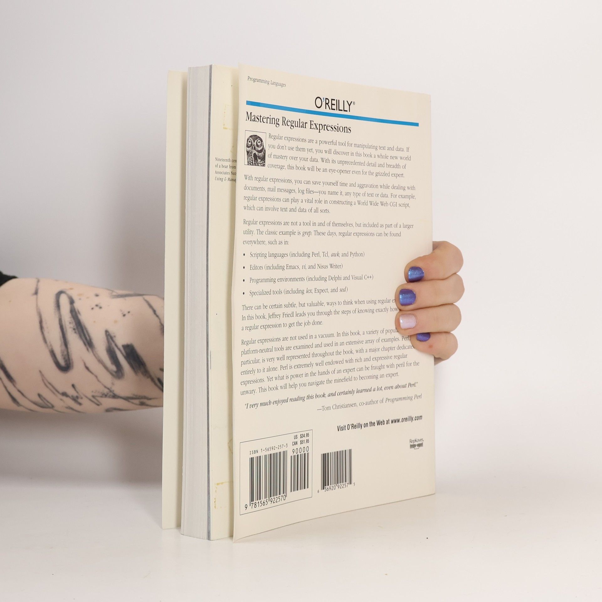 Regular expressions, a tool for manipulating text and data, are found in scripting languages, editors, programming environments, and specialized tools. This text provides a guide to the steps of crafting a regular expression, examining several tools and providing examples, with a focus on Perl.