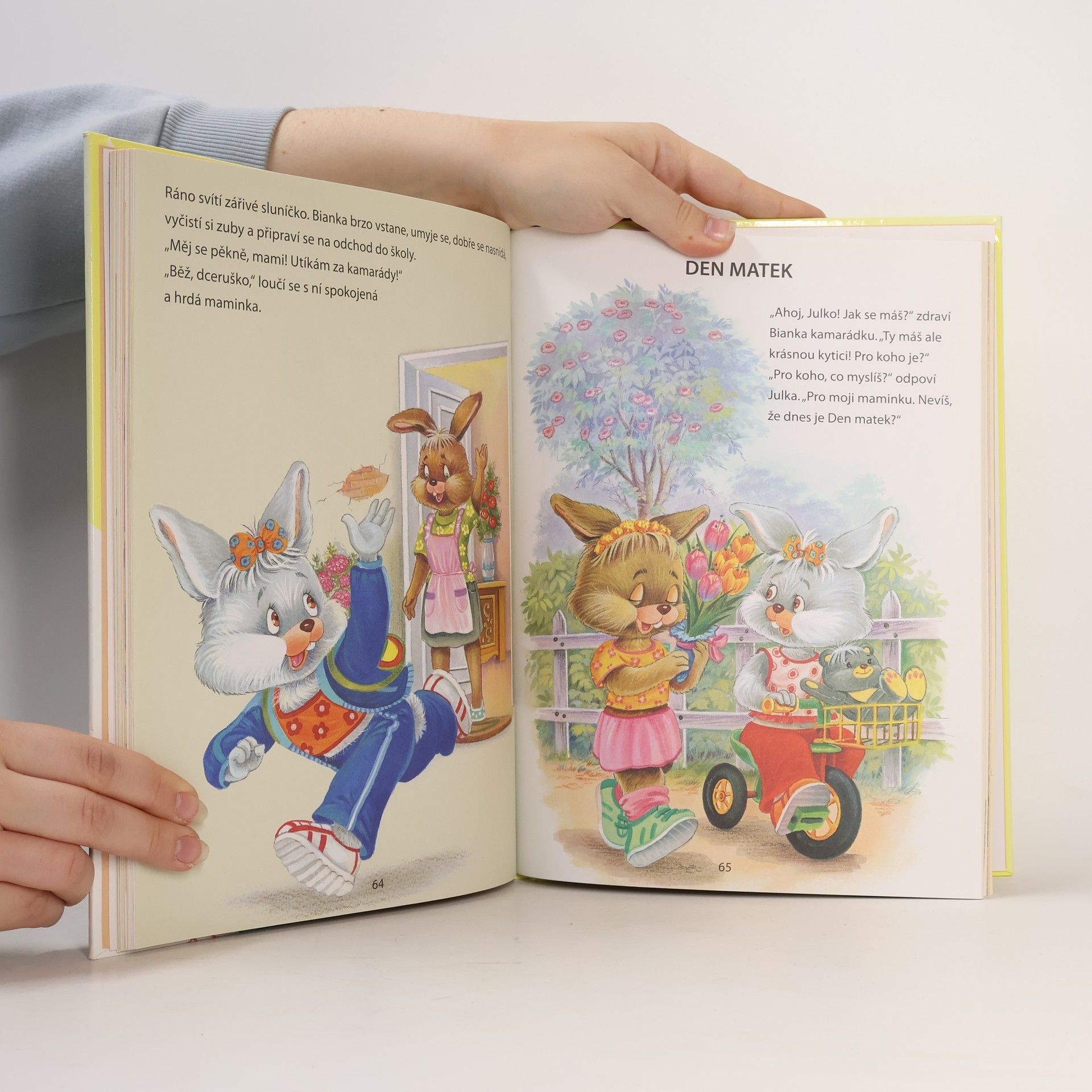 V knížce se dočtete o malé zaječici Bianke jako pomáhá mamince, peče pískové koláčky, překvapí mamičku na den matek a ještě další zajímavé příběhy.