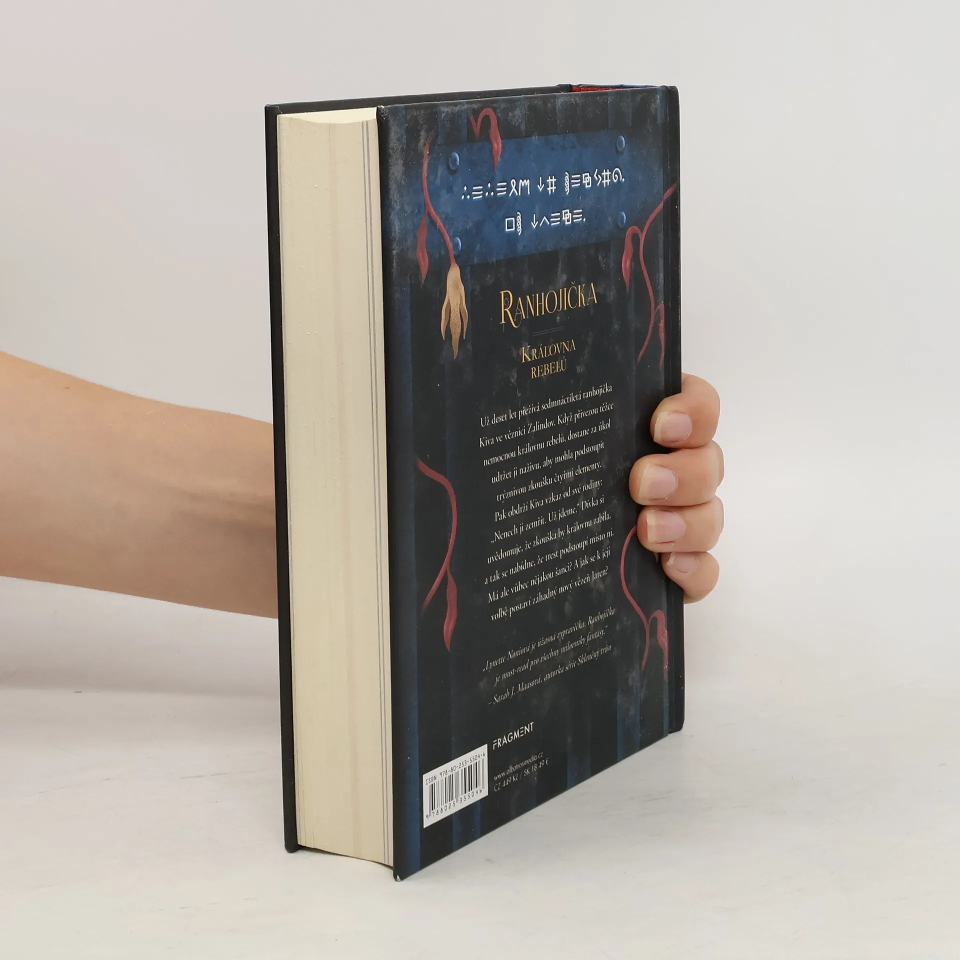 Mnohým zachránila život, teď bude bojovat o ten svůj. První díl napínavé fantasy série. Už deset let přežívá sedmnáctiletá ranhojička Kiva v nechvalně proslulé věznici Zalindov. Když přivezou těžce nemocnou královnu rebelů, dostane nelehký úkol – udržet ji na živu, aby mohla podstoupit zkoušky utrpením, určené těm nejnebezpečnějším zločincům. Musí přežít mučení vzduchem, ohněm, vodou a zemí, což se zatím nikomu nepodařilo. Ve stejné době dostane Kiva šifrovaný vzkaz od své rodiny: „Nenech ji zemřít. Už jdeme.“ Dívka si uvědomuje, že zkoušky by nemocnou královnu zabily, a tak se nabídne, že je podstoupí místo ní. Pokud uspěje, budou obě svobodné. Kiva má strach z nejisté budoucnosti. Spánek jí ruší i epidemie, která se šíří věznicí, a také Jaren - nový vězeň, jehož přítomnost je pro ni důležitější, než si dokáže přiznat…Pak obdrží Kiva vzkaz od své rodiny: „Nenech ji zemřít. Už jdeme.“ Dívka si uvědomuje, že zkouška by královnu zabila, a tak se nabídne, že trest podstoupí místo ní. Má ale vůbec nějakou šanci? A jak se k její volbě postaví záhadný nový vězeň Jaren?
