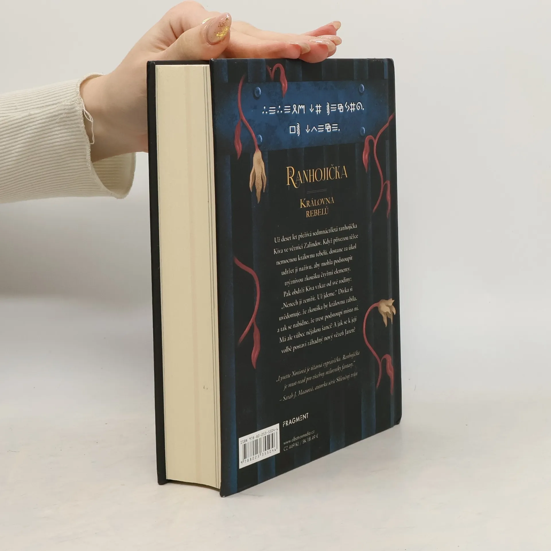 Mnohým zachránila život, teď bude bojovat o ten svůj. První díl napínavé fantasy série. Už deset let přežívá sedmnáctiletá ranhojička Kiva v nechvalně proslulé věznici Zalindov. Když přivezou těžce nemocnou královnu rebelů, dostane nelehký úkol – udržet ji na živu, aby mohla podstoupit zkoušky utrpením, určené těm nejnebezpečnějším zločincům. Musí přežít mučení vzduchem, ohněm, vodou a zemí, což se zatím nikomu nepodařilo. Ve stejné době dostane Kiva šifrovaný vzkaz od své rodiny: „Nenech ji zemřít. Už jdeme.“ Dívka si uvědomuje, že zkoušky by nemocnou královnu zabily, a tak se nabídne, že je podstoupí místo ní. Pokud uspěje, budou obě svobodné. Kiva má strach z nejisté budoucnosti. Spánek jí ruší i epidemie, která se šíří věznicí, a také Jaren - nový vězeň, jehož přítomnost je pro ni důležitější, než si dokáže přiznat…Pak obdrží Kiva vzkaz od své rodiny: „Nenech ji zemřít. Už jdeme.“ Dívka si uvědomuje, že zkouška by královnu zabila, a tak se nabídne, že trest podstoupí místo ní. Má ale vůbec nějakou šanci? A jak se k její volbě postaví záhadný nový vězeň Jaren?