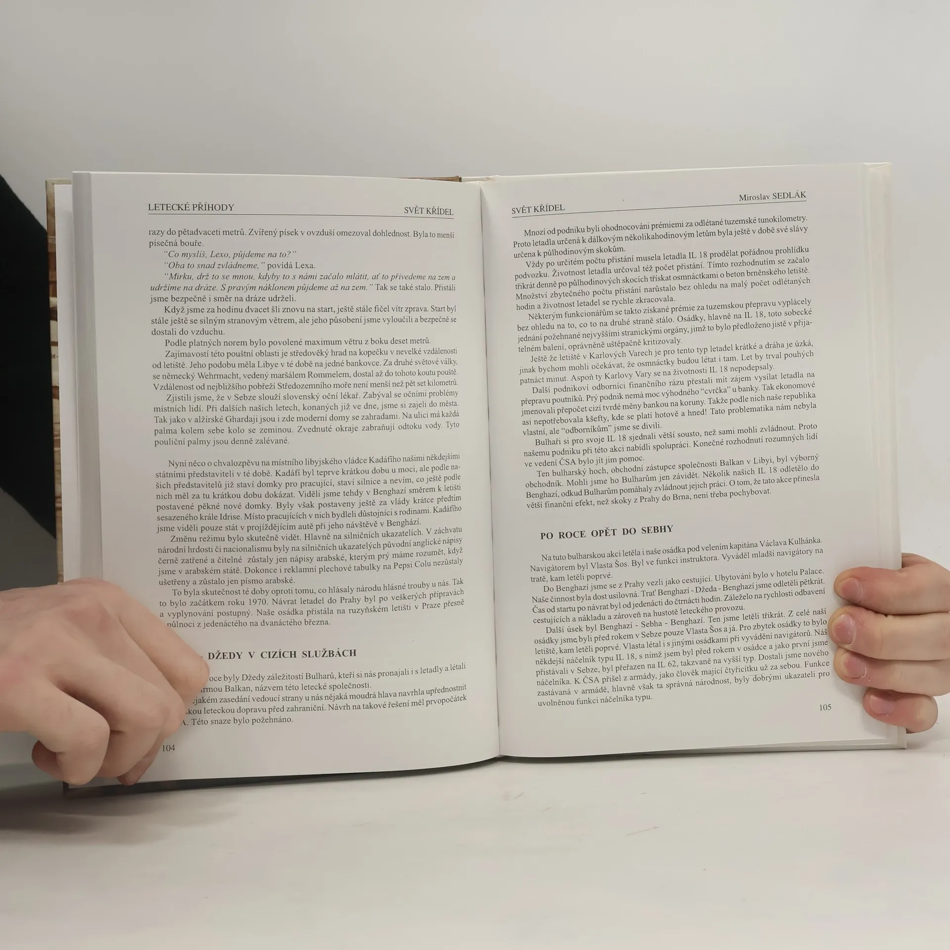 Kniha vypráví o dobrodružném životě zkušebního pilota Miroslava Sedláka od jeho pilotních začátků až po odchod do důchodu po dlouholeté práci pro Národní podnik Aero Vodochody. Během svého života procestoval různé kouty světa a barvitě popisuje příhody, které se mu na této cestě přihodily. Byl jedním z mála pilotů, kteří létali v Africe, v republice Mali. Za sedmatřicet let prožitých za kniplem letadel sám prožil mnoho okamžiků veselých,méně veselých, smutných i tragických. Právě nejedna letecká tragédie se dotkla přímo autora nebo jeho blízkých přátel. Cenný je i souhrnný přehled leteckých havárií, katastrof a únosů letadel, který knihu doplňuje.