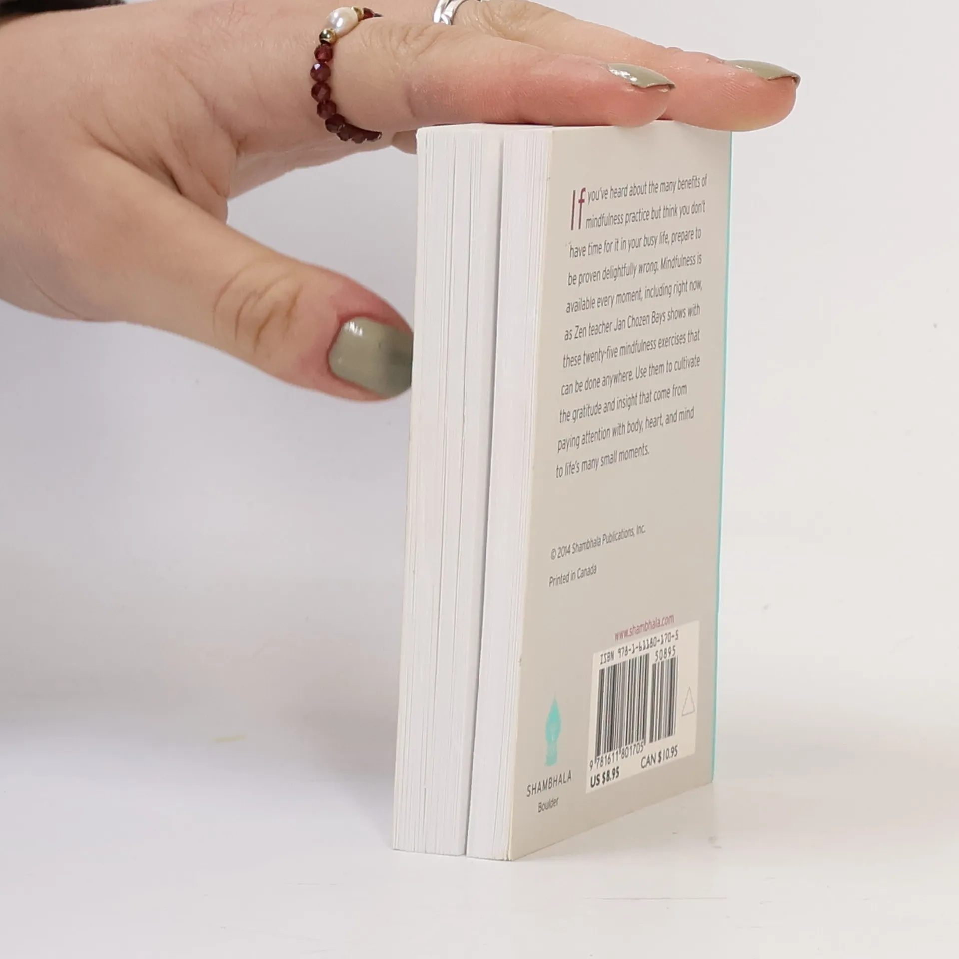 Mindfulness practices anyone can do anytime. If you’ve heard about the many benefits of mindfulness practice but think you don’t have time for it in your busy life, prepare to be proven delightfully wrong. Mindfulness is available every moment, including right now, as Zen teacher Jan Chozen Bays shows with these twenty-five mindfulness exercises that can be done anywhere. Use them to cultivate the gratitude and insight that come from paying attention with body, heart, and mind to life’s many small moments.