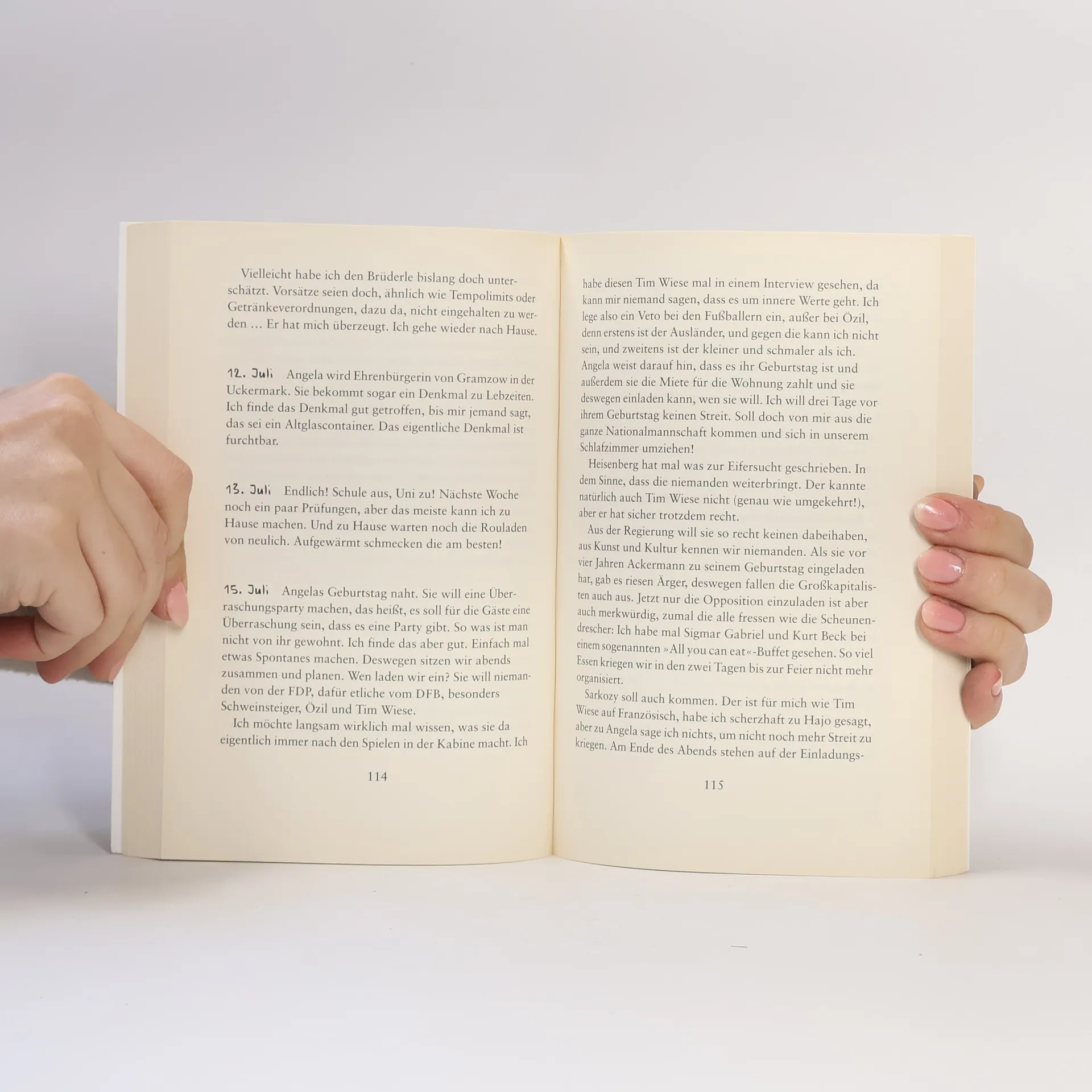 Seine Frau regiert unser Land, er macht den Rest: Absolut komplett unglaubliche Einblicke in das total wahnwitzige Leben vom Mann an Angelas Seite! 31. Dezember Wir haben gute Vorsätze fürs neue Jahr. Ich will hin und wieder Sport machen, Mutti will den Euro retten. Bin gespannt, wer länger durchhält. Nachmittags Anruf von Wulff: Wenn wir heute noch die „Hör Zu“ abonnieren, bekäme er einen schönen Toaster als Abo-Geschenk. Merkwürdiger Kerl. 16. Januar Nachts vom Neujahrsempfang geträumt. Meine Frau hat mich irgendeinem Diplomaten als Gertrud Steinbrück vorgestellt. Vor Schreck aufgewacht und erst spät wieder eingeschlafen.