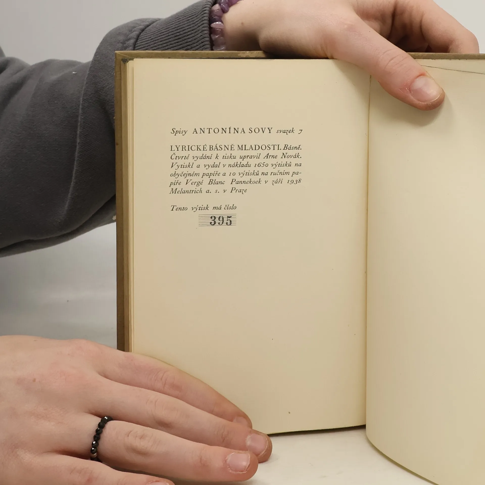 Lyrické básně mladosti (číslovaný výtisk), Antonín Sova, Arne Novák