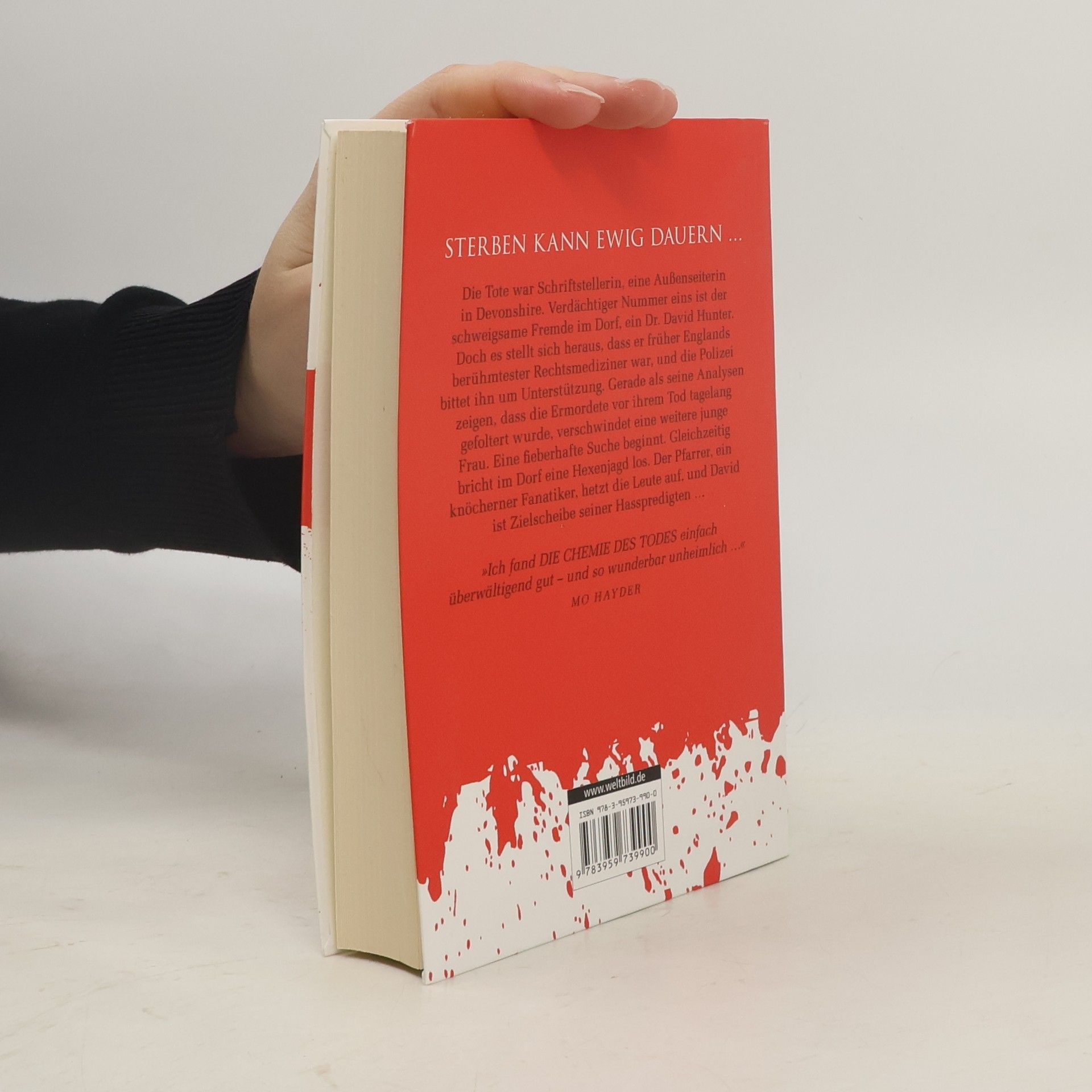 STERBEN KANN EWIG DAUERN ...... aber der menschliche Körper beginnt kaum fünf Minuten nach dem Tod zu verwesen – und wird dann zu einem gigantischen Festschmaus für andere Organismen. Zuerst für Bakterien, dann für Insekten. Fliegen. Die Larven verlassen die Leiche in Reih und Glied, in einer Schlangenlinie, die sich immer nach Süden bewegt. Ein Anblick, der jeden dazu veranlassen würde, das Phänomen zu seinem Ursprungzurückzuverfolgen. Und so entdecken die Yates-Brüder, was von Sally Palmer übrig geblieben war ...Die Tote war Schriftstellerin, eine Außenseiterin in Devonshire. Verdächtiger Nummer eins ist der schweigsame Fremde im Dorf, ein Dr. David Hunter. Doch es stellt sich heraus, dass er früher Englands berühmtester Rechtsmediziner war, und die Polizei bittet ihn um Unterstützung. Gerade als seine Analysen zeigen, dass die Ermordete vor ihrem Tod tagelang gefoltert wurde, verschwindet eine weitere junge Frau. Eine fieberhafte Suche beginnt. Gleichzeitig bricht im Dorf eine Hexenjagd los. Der Pfarrer, ein knöcherner Fanatiker, hetzt die Leute auf, und David ist Zielscheibe seiner Hasspredigten ...«Ich fand die Chemie des Todes einfach überwältigend gut – und so wunderbar unheimlich ...» MO HAYDER