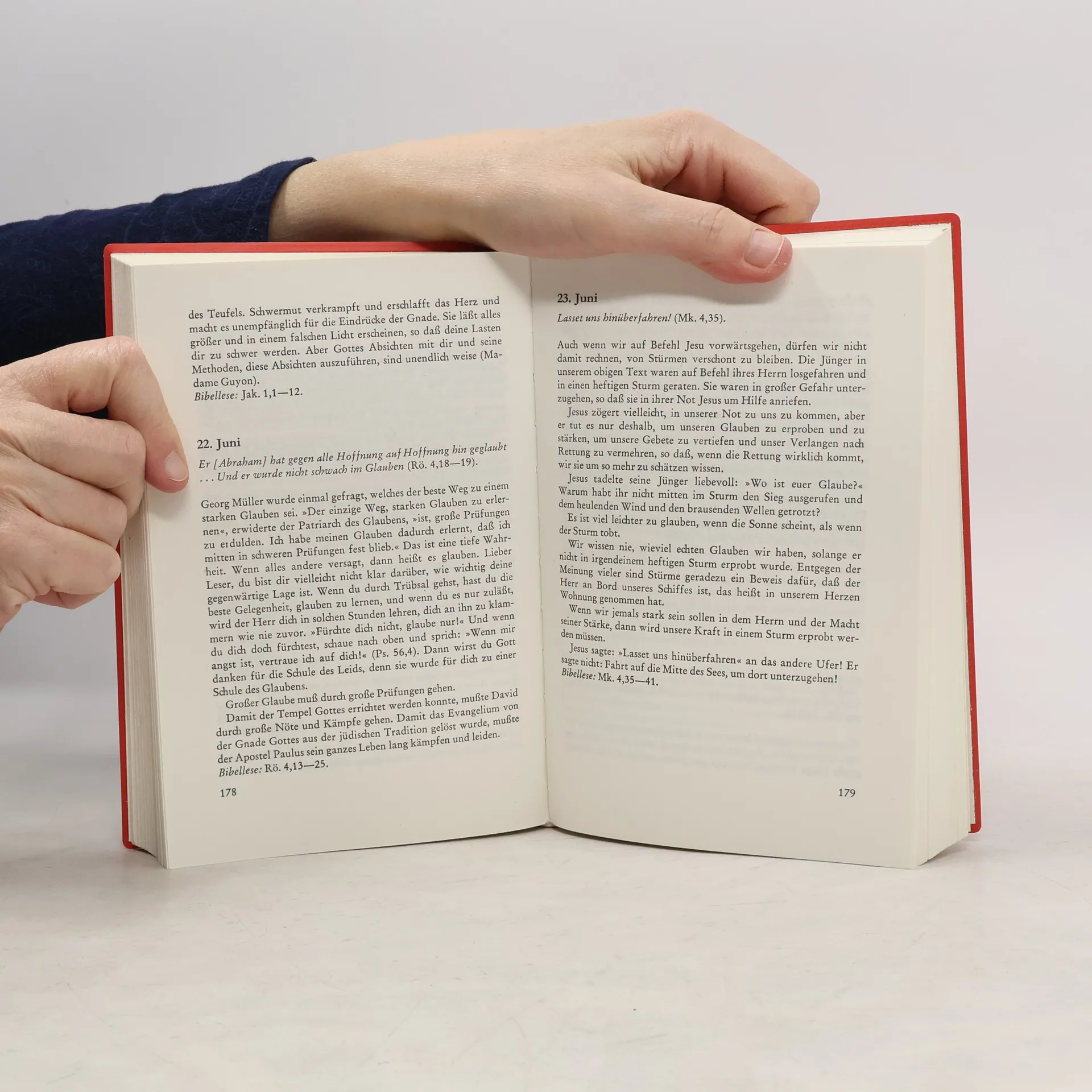 Wertvolle Impulse für Ihr Leben finden sich auf jeder Seite dieses Klassikers. An einer Stelle heißt es: "Gott besucht uns oft, aber meistens sind wir nicht zu Hause". Dieses Andachtsbuch hilft Ihnen, sich im Alltag mehr und mehr auf Gott auszurichten. Es ist für die persönliche Stille Zeit ebenso geeignet wie für Familienandachten. Ergänzt wird das Buch durch anschauliche Berichte aus dem Leben von Georg Müller, Charles H. Spurgeon und anderen bekannten Christen sowie durch vertiefende Bibelstellen.