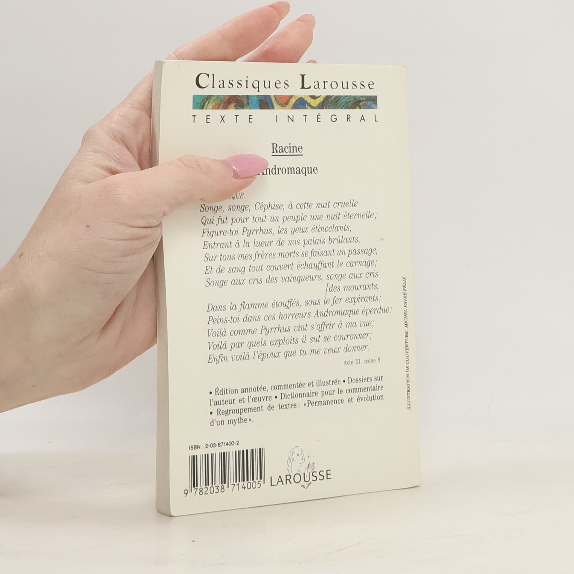 Oreste aime Hermione, qui aime Pyrrhus, qui aime Andromaque, qui aime Hector, qui est mort... Pris dans une chaîne amoureuse sans issue, comment pourraient-ils s'en sortir ? De fait, quand le rideau s'ouvre, tous les éléments de l'étau tragique sont déjà prêts à se refermer sur les personnages : prisonniers de leurs passions, leur perte est inéluctable. Racine orchestre avec délectation leurs débats impuissants, leurs actions désespérées, et leur terrible fin, pour le plus grand plaisir du spectateur et du lecteur. Modèle par excellence de l'écriture classique, Racine n'en reste pas moins d'une modernité étonnante : sa peinture des rapports humains et sa connaissance du coeur amoureux touchent peut-être plus que jamais. En particulier dans Andromaque qui est sans doute, avec Phèdre, la tragédie où la passion amoureuse est la plus dévastatrice. Et sur scène, depuis sa création en 1667, le succès ininterrompu d'Andromaque est la preuve vivante de cette modernité.