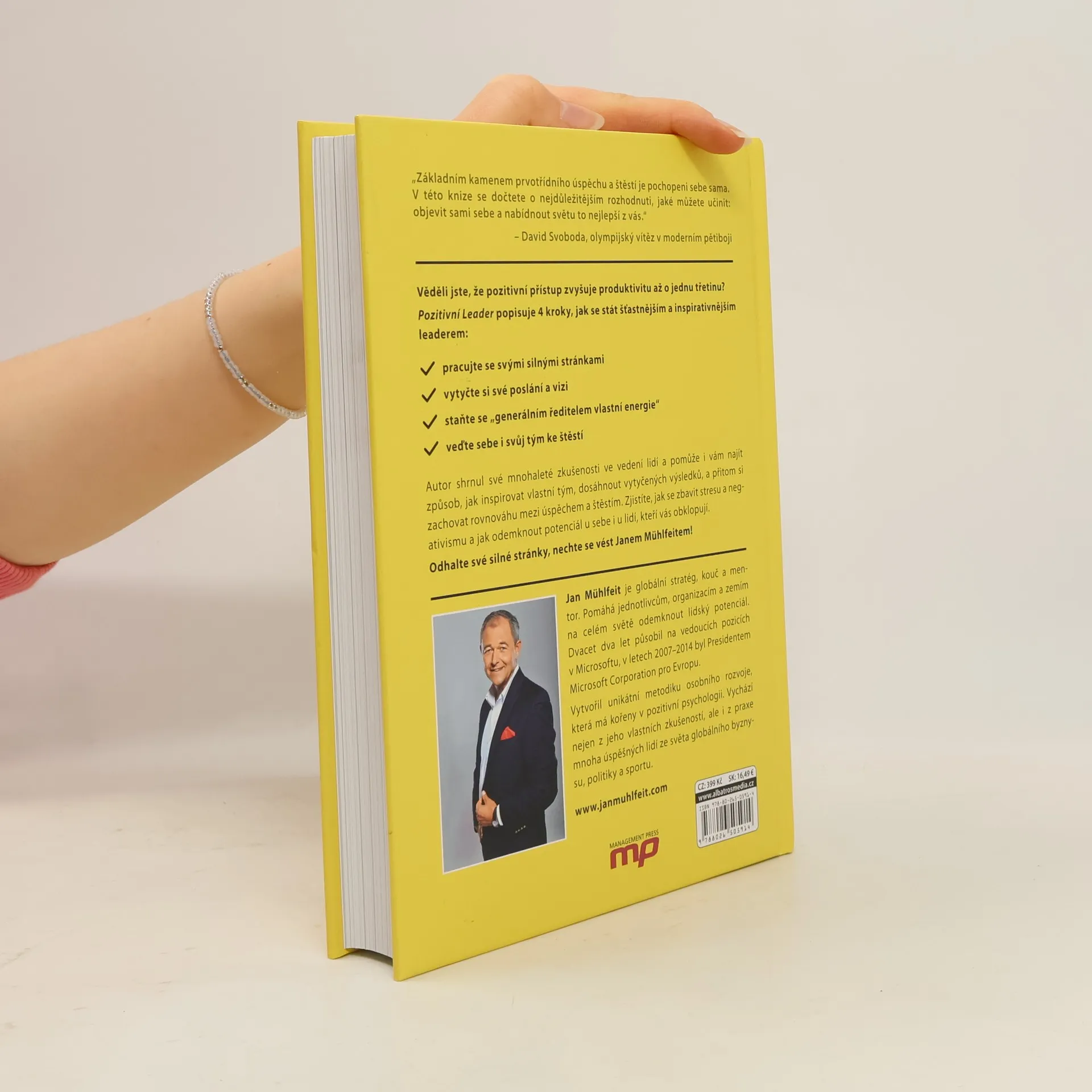 Autor, bývalý prezident evropského Microsoftu, shrnul do knihy své mnohaleté zkušenosti ve vedení lidí. Pomůže vám najít způsob, jak inspirovat vlastní tým, dosáhnout vytyčených výsledků, a přitom si zachovat rovnováhu mezi úspěchem a štěstím. Zjistíte, jak se zbavit stresu a negativismu a odemknout potenciál u sebe i u lidí, kteří vás obklopují. Odhalte své silné stránky, nechte se vést Janem Mühlfeitem!