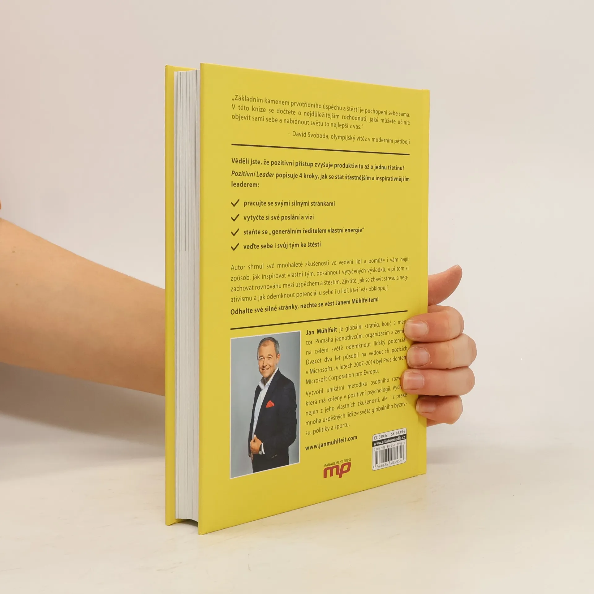 Autor, bývalý prezident evropského Microsoftu, shrnul do knihy své mnohaleté zkušenosti ve vedení lidí. Pomůže vám najít způsob, jak inspirovat vlastní tým, dosáhnout vytyčených výsledků, a přitom si zachovat rovnováhu mezi úspěchem a štěstím. Zjistíte, jak se zbavit stresu a negativismu a odemknout potenciál u sebe i u lidí, kteří vás obklopují. Odhalte své silné stránky, nechte se vést Janem Mühlfeitem!