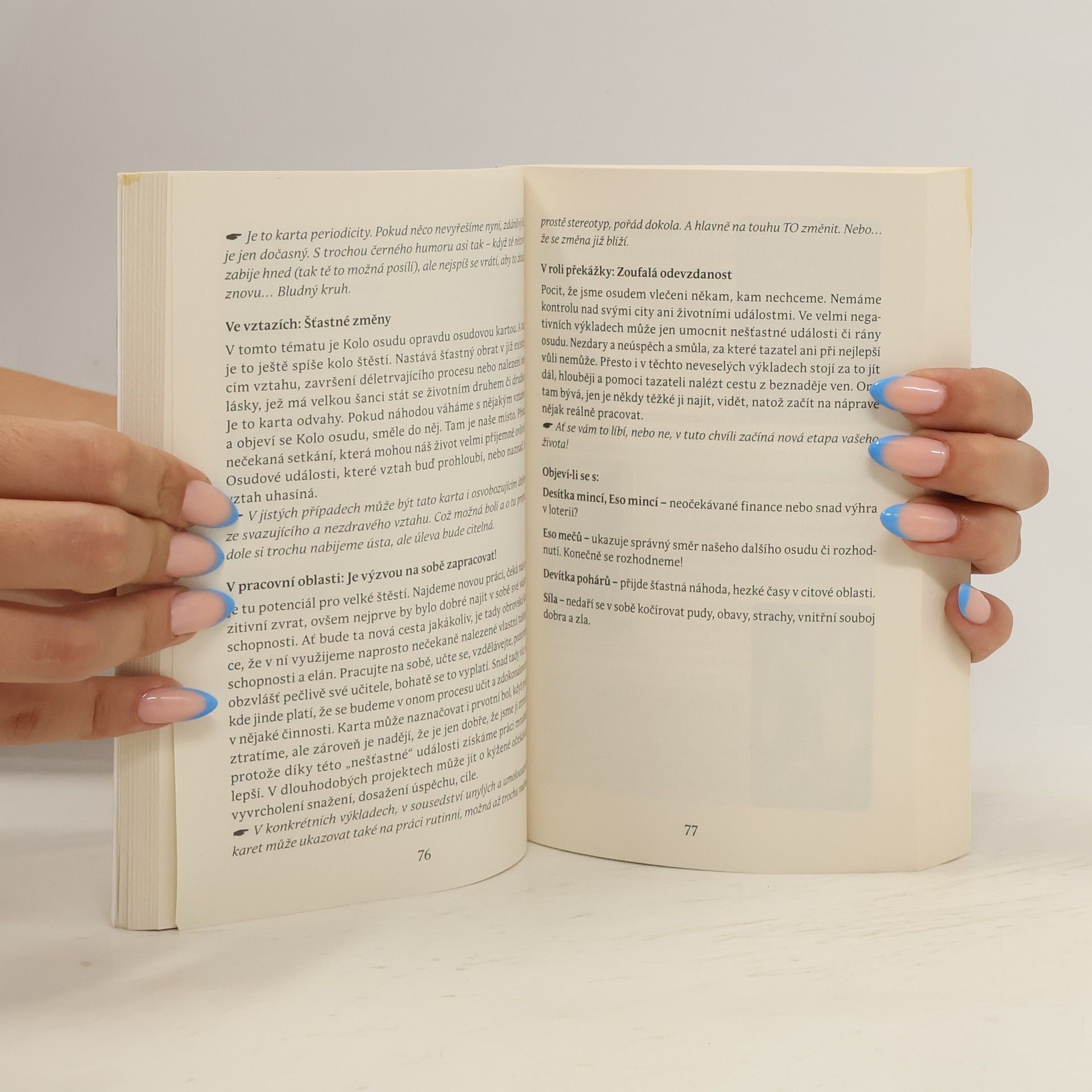 Přijměte pozvání do tarotové cukrárny, kde se setkáte se všemi odstíny lidského bytí – od chvil štěstí po prázdné chvíle beznaděje. Kniha nabízí více než 78 situací, zaměřuje se na obrázky a vnímání různých autorů, jako byste vstoupili do cukrárny plné voňavých sladkostí od nejlepších cukrářů. Najdete zde tarotové sady, které vás osloví nostalgií nočních snů, keltskými draky, kočkami, steampunkovými motivy či moderními prvky. Každá karta, i když může mít zdánlivě stejný význam, může být vnímána jinak, což vám otevře oči. Tato originální příručka se zaměřuje na symboliku a významy karet, které ožívají a stávají se snadno zapamatovatelnými. U každé karty naleznete význam pro výklad v oblastech vztahů, práce a překážek, a také užitečné kombinace s dalšími kartami. Kniha je skvělým úvodem pro začátečníky a inspirací pro pokročilé vykladače. Pokud ještě nemáte tarotové karty, srovnání ilustrací a nálad třinácti tarotových souborů vám pomůže vybrat ten pravý pro vás.