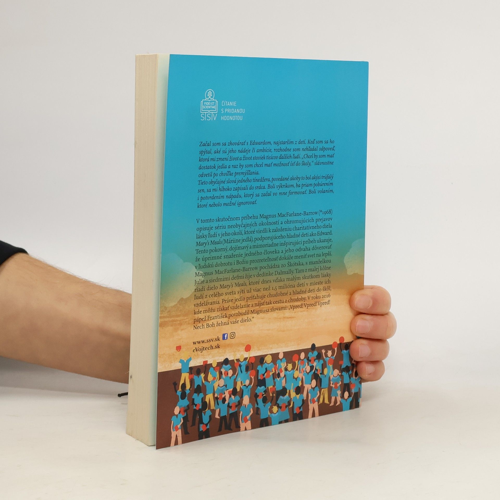 V tomto skutočnom príbehu opisuje škótsky autor sériu neobyčajných okolností a ohromujúcich prejavov lásky ľudí v jeho okolí, ktoré viedli k založeniu charitatívneho diela Mary´s Meals (Máiine jedlá).Tento pokorný, dojímavý a mimoriadne inšpirujúci príbeh ukazuje, že úprimné snaženie jedného človeka a jeho odvaha dôverovať v ľudskú dobrotu i Božiu prozreteľnosť dokáže meniť svet na lepší. Kúpou e-knihy podporíte dielo Mary´s Meals sumou 2 eurá.