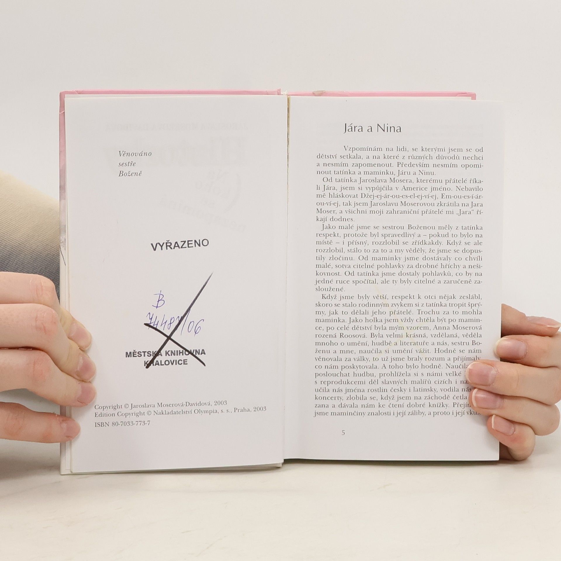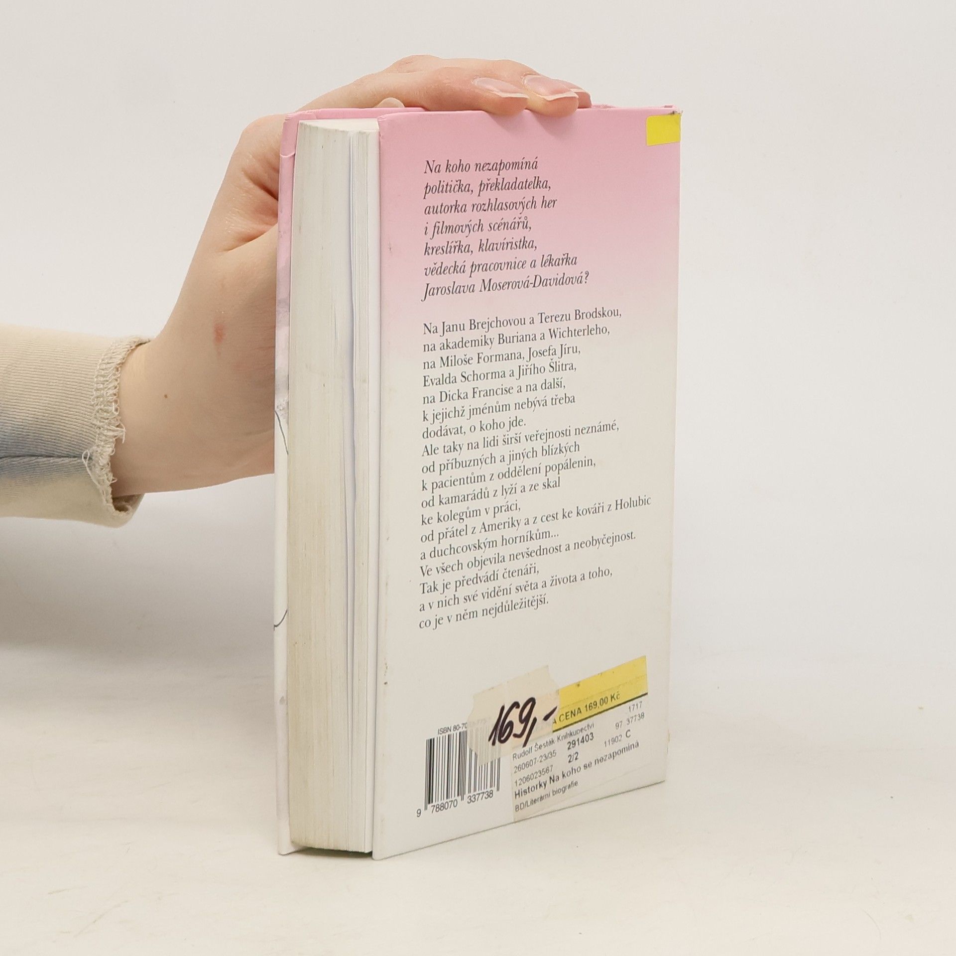 Vyprávění vzpomínkového charakteru v podání člověka, který má za sebou zajímavý lidský osud i profese. Vzpomíná na Janu Brejchovou, Terezu Brodskou, na akademiky Buriana a Wichterleho, Miloše Formana, Josefa Jíru, Evalda Schorma, Jiřího Šlitra a Dicka Francise a další, k jejichž jménům nebývá třeba dodávat, o koho jde. Ale taky na lidi širší veřejnosti neznáme od příbuzných až k pacientům z oddělení popálenin. Ve všech objevila nevšednost a neobyčejnost. Jaroslava Moserová se totiž uměla dívat a viděné i nakreslit.... celý text