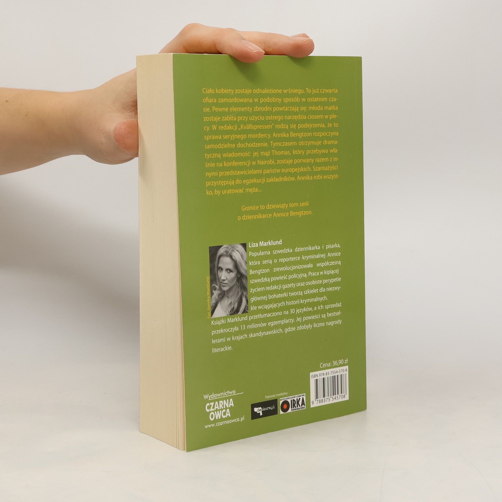 Dziewiąty tom serii o dziennikarce Annice Bengtzon Ciało pięknej kobiety zostaje odnalezione w śniegu. To już czwarta ofiara zamordowana w podobny sposób w krótkim czasie. Pewne elementy zbrodni powtarzają się: młoda matka zostaje zabita przy użyciu ostrego narzędzia ciosem w plecy. W redakcji Anniki Bengtzon rodzą się podejrzenia, że w grę wchodzi seryjny morderca. Dziennikarka rozpoczyna samodzielne dochodzenie. Jednocześnie otrzymuje dramatyczną wiadomość: jej mąż, Thomas, który przebywa właśnie na konferencji w Nairobi, zostaje porwany na granicy Kenii z Somalią razem z innymi przedstawicielami państw europejskich. Szantażyści przystępują do egzekucji zakładników. Annika zrobi wszystko, by uratować swojego męża… Liza Marklund popularna szwedzka dziennikarka i pisarka, która serią o reporterce kryminalnej Annice Bengtzon zrewolucjonizowała współczesną szwedzką powieść policyjną.
