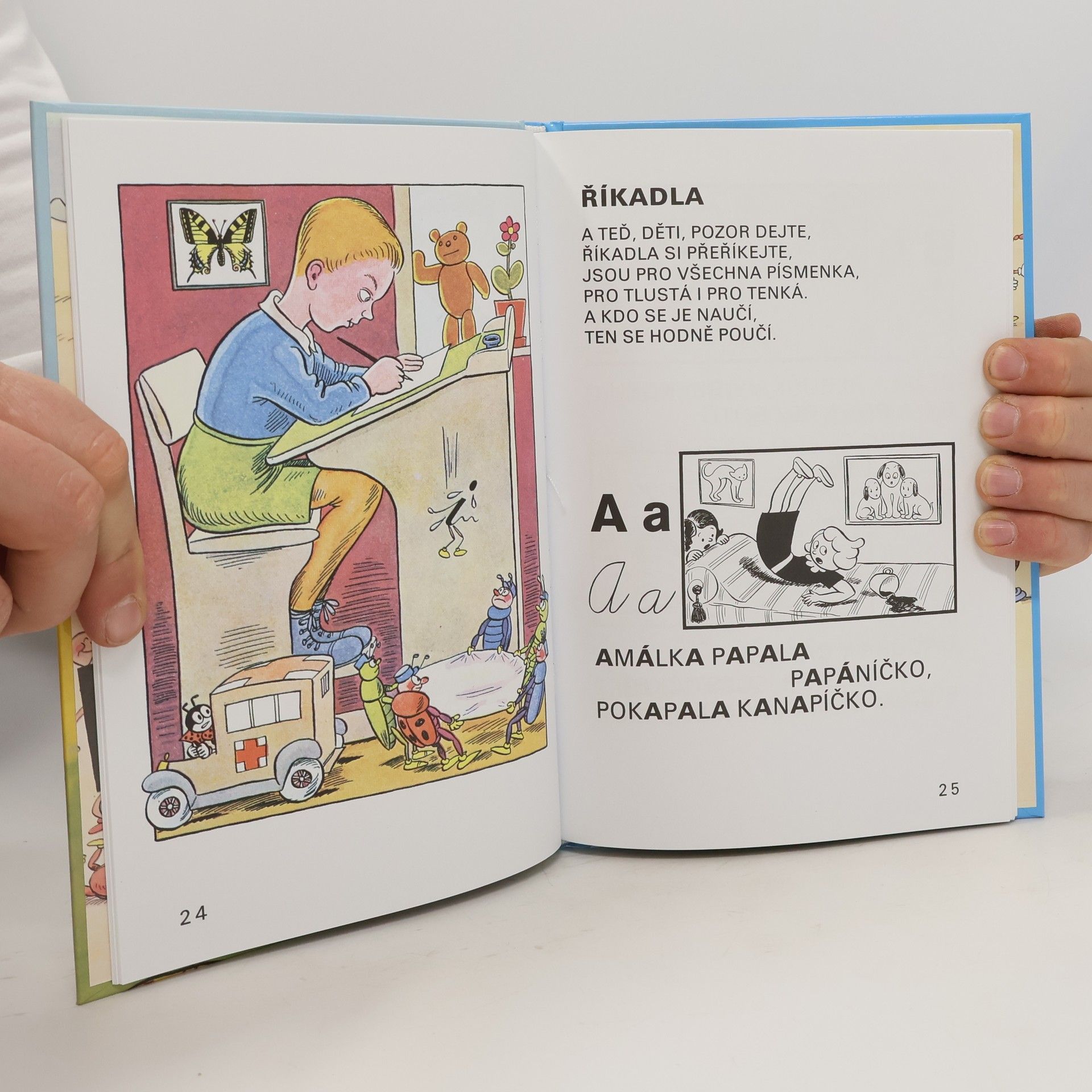 Knížka, kde se děti prostřednictvím Ferdy Mravence seznámí s jednotlivými písmeny abecedy. Každé písmenko doprovází vtipné říkadlo a kreslený předmět, který ho svým vzhledem připomíná. Pestrá knížka je doplněna humornými pohádkovými příběhy o písmenkách a psaní, a může tak prvňáčkům zpříjemnit a osvěžit učení i psaní abecedy.