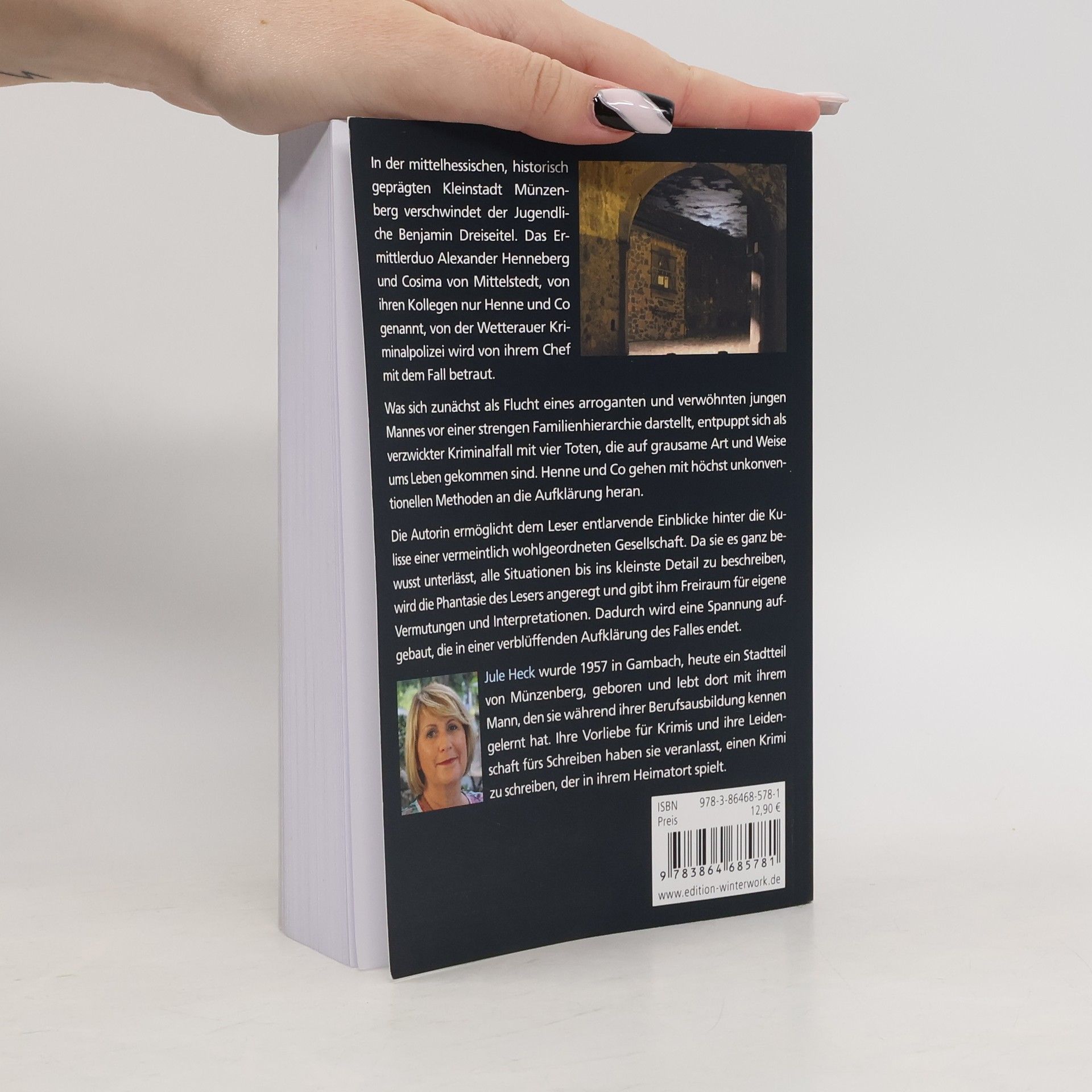 In der mittelhessischen, historisch geprägten Kleinstadt Münzenberg verschwindet der Jugendliche Benjamin Dreiseitel. Das Ermittlerduo Alexander Henneberg und Cosima von Mittelstedt, von ihren Kollegen nur Henne und Co genannt, von der Wetterauer Kriminalpolizei wird von ihrem Chef mit dem Fall betraut. Was sich zunächst als Flucht eines arroganten und verwöhnten jungen Mannes vor einer strengen Familienhierarchie darstellt, entpuppt sich als verzwickter Kriminalfall mit vier Toten, die auf grausame Art und Weise ums Leben kommen. Henne und Co gehen mit höchst unkonventionellen Methoden an die Aufklärung der Fälle heran. Die Autorin ermöglicht dem Leser entlarvende Einblicke hinter die Kulisse einer vermeintlich wohlgeordneten Gesellschaft. Da sie es ganz bewusst unterlässt, alle Situationen bis ins kleinste Detail zu beschreiben, wird die Phantasie des Lesers angeregt und gibt ihm Freiraum für eigene Vermutungen und Interpretationen. Dadurch wird eine Spannung aufgebaut, die in einer verblüffenden Aufklärung des Falles endet.