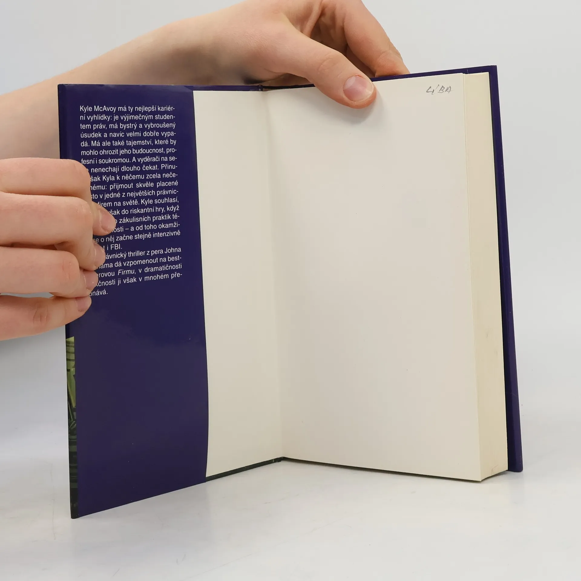 Kyle McAvoy má ty nejlepší kariérní výhlídky: je výjimečným studentem práv, má bystrý a vybroušený úsudek a navíc velmi dobře vypadá. Má ale také tajemství, které by mohlo ohrozit jeho budoucnost, profesní i soukromou. A vyděrači na sebe nenechají dlouho čekat. Přinutí však Kyla k něčemu zcela nečekanému: přijmout skvěle placené místo v jedné z největších právnických firem na světě. Kyle souhlasí, pustí se však do riskantní hry, když pronikne do zákulisních praktik této společnosti a od toho okamžiku se o něj začne stejně intenzivně zajímat i FBI. Nový právnický thriller z pera Johna Grishama dá vzpomenout na bestsellerovou Firmu, v dramatičnosti a akčnosti ji však v mnohém překonává.