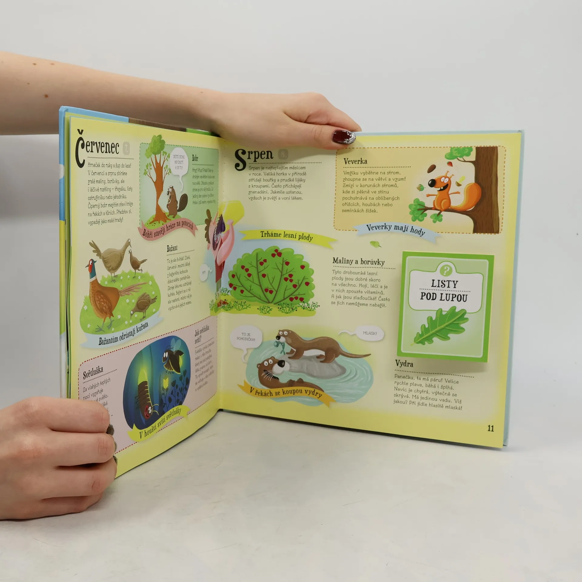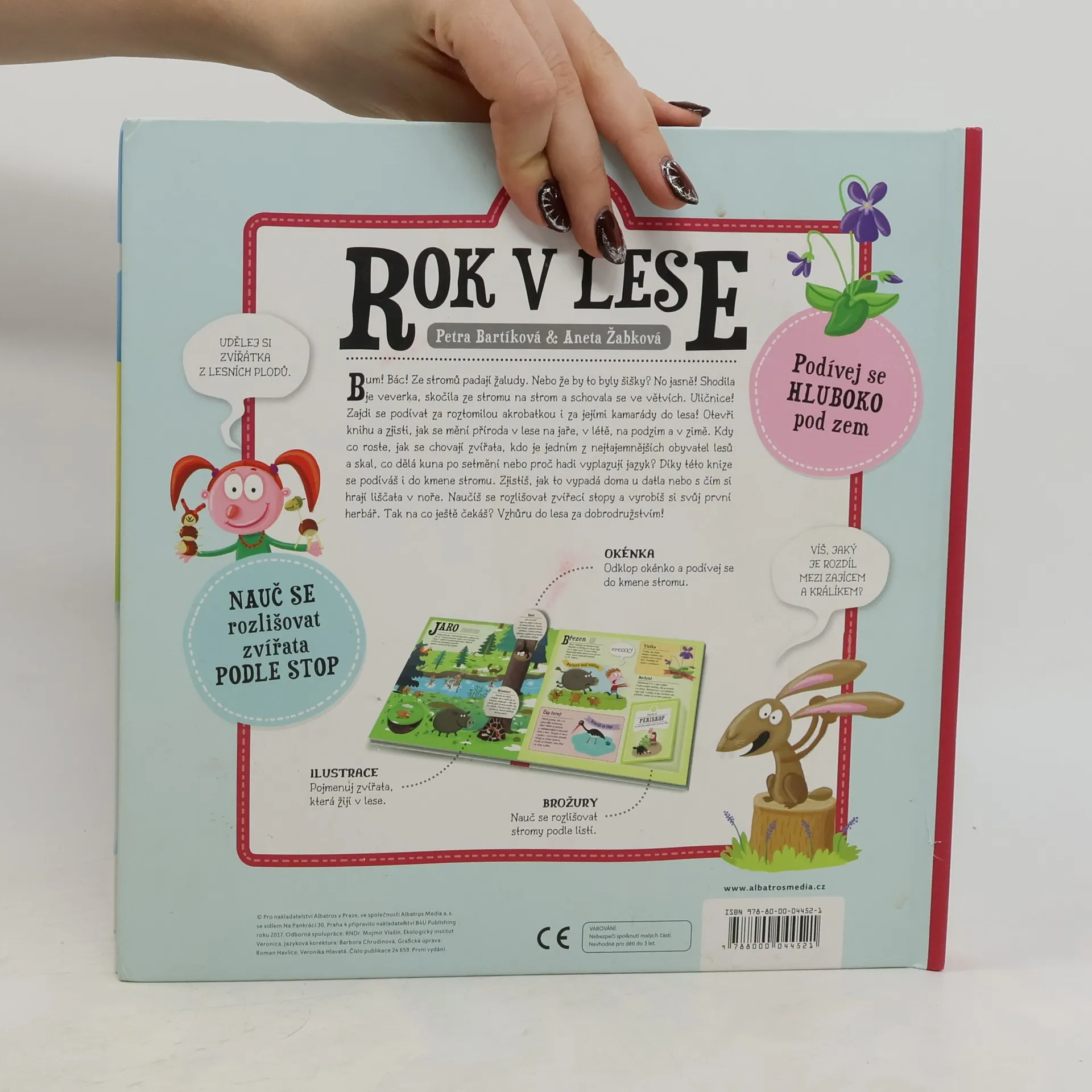 Bum! Bác! Ze stromů padají žaludy. Nebo že by to byly šišky? No jasně! Shodila je veverka, skočila ze stromu na strom a schovala se ve větvích. Uličnice! Zajdi se podívat za roztomilou akrobatkou i za jejími kamarády do lesa! Otevři knihu a zjisti, kdy co roste, jak se chovají zvířata, kdo je jedním z nejtajemnějších obyvatel lesů a skal, co dělá kuna po setmění nebo proč hadi vyplazují jazyk. Naučíš se rozlišovat zvířecí stopy a vyrobíš si svůj první herbář. Tak vzhůru do lesa za dobrodružstvím!
