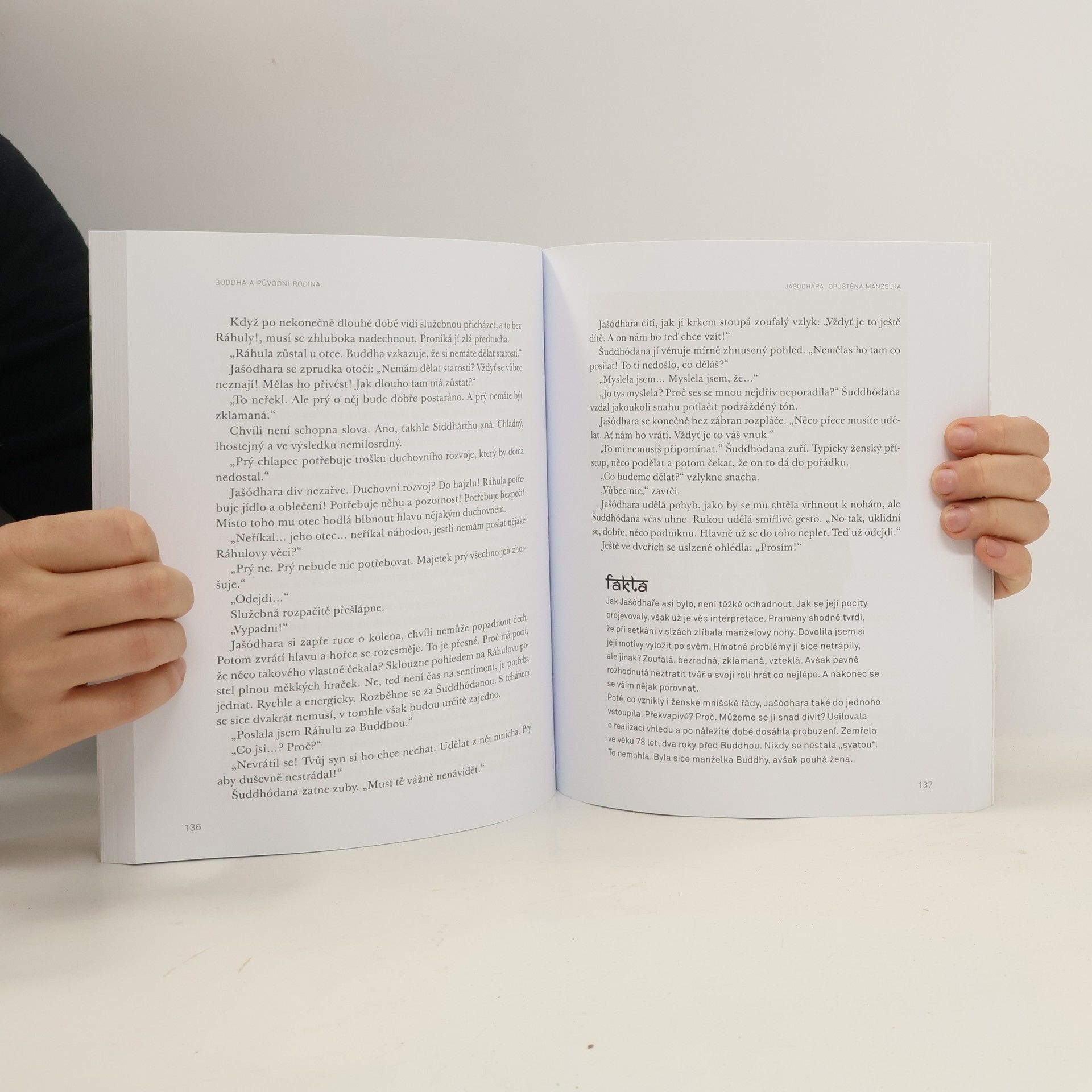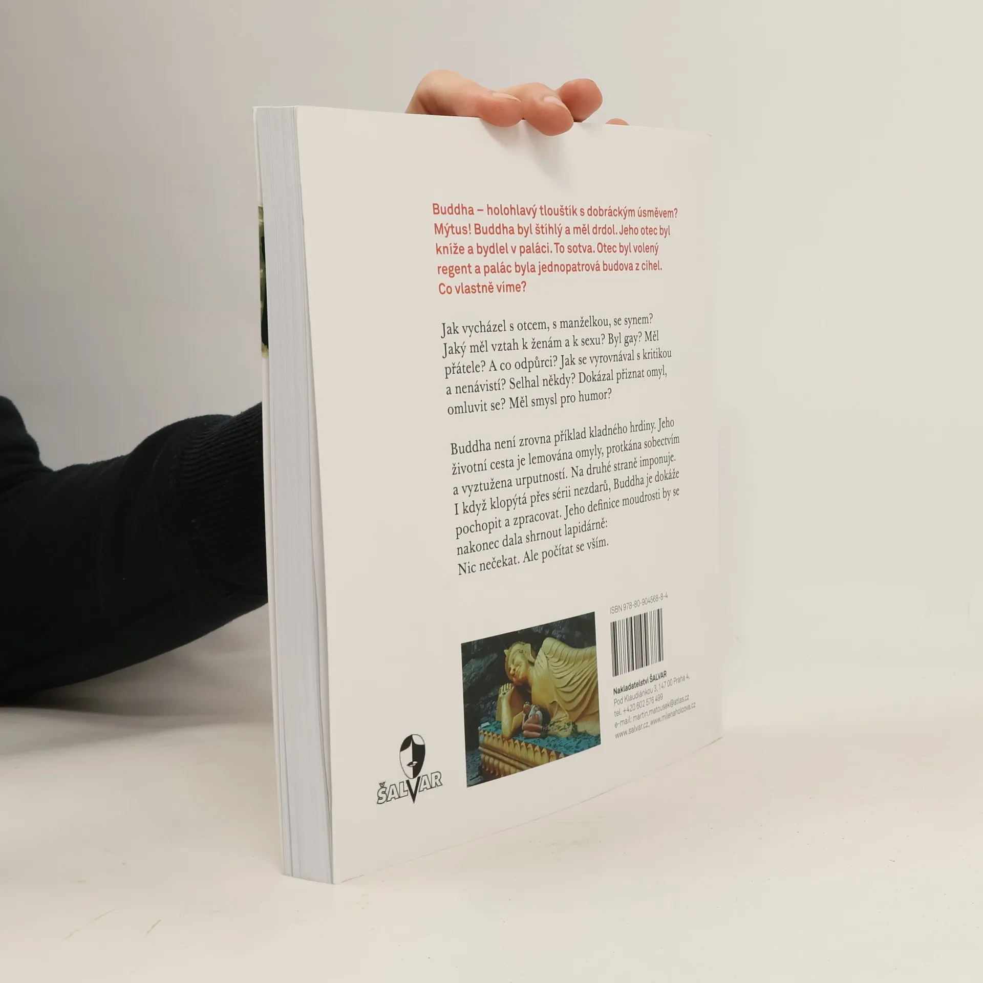Buddha - holohlavý tlouštík s dobráckým úsměvem? Mýtus! Buddha byl štíhlý a měl drdol. Jeho otec byl kníže a bydlel v paláci. To sotva. Otec byl volený regent a palác byla jednopatrová budova z cihel. Co vlastně víme? Známe základní životní příběh s několika zvraty. A dál? Jak vycházel s otcem, s manželkou, se synem? Jaký měl vztah k ženám a k sexu? Byl gay? Měl přátele? A co odpůrci? Jak se vyrovnával s kritikou a nenávistí? Selhal někdy? Dokázal přiznat omyl, omluvit se? Měl smysl pro humor? Buddha není zrovna příklad kladného hrdiny. Jeho životní cesta je lemována omyly, protkána sobectvím a vyztužena urputností. Na druhé straně imponuje. I když klopýtá přes sérii nezdarů, Buddha je dokáže pochopit a zpracovat. Jeho definice moudrosti by se nakonec dala shrnout lapidárně: Nic nečekat. Ale počítat se vším. Nedocenitelná knížka pro multikulturní poznávání všech generací, pro školy, mimoškolní , určitě pro vnímavé, inteligentní čtenáře.
