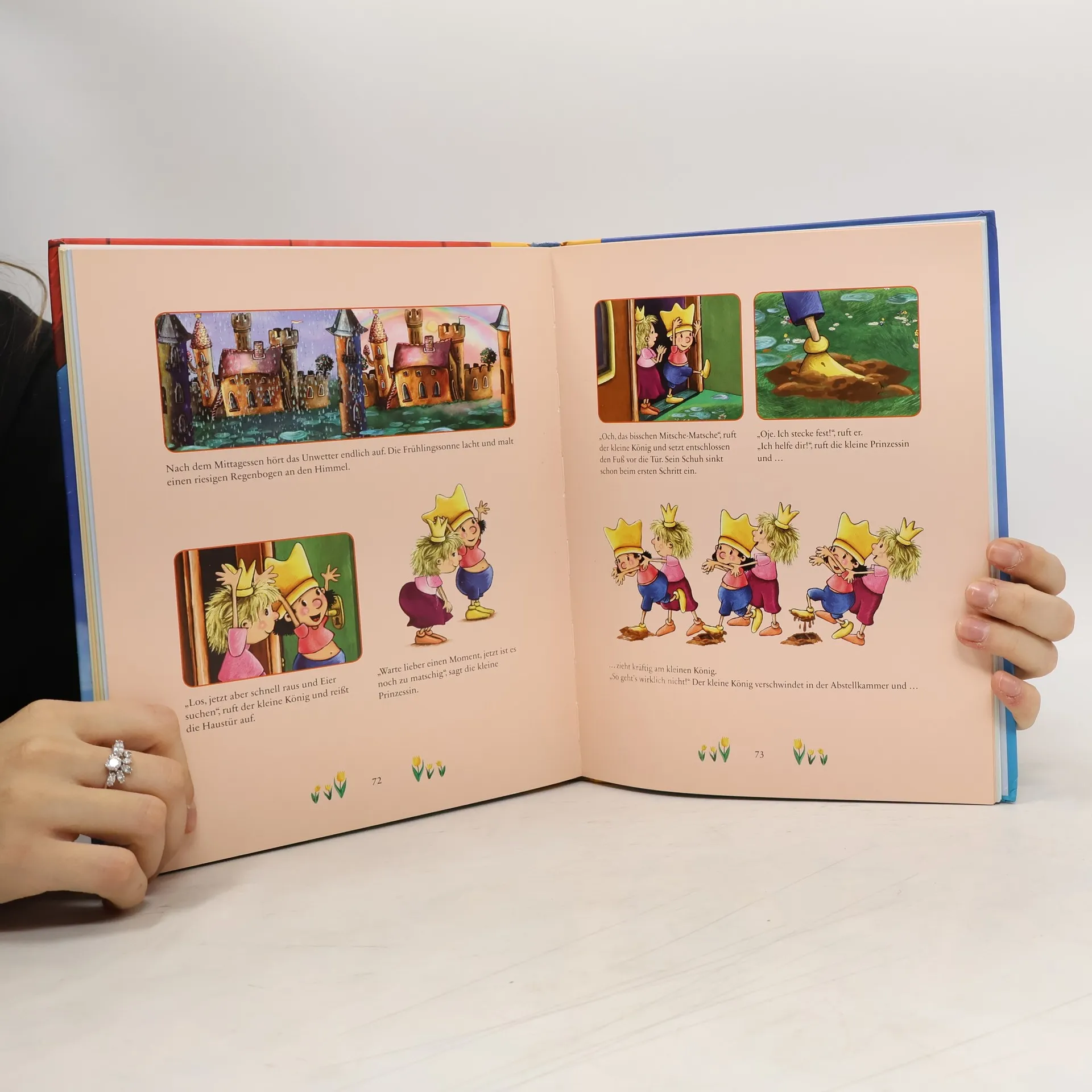 Eine Krone, ein Schloss und den ganzen Tag gemütlich auf dem Thron sitzen? Von wegen! Auch kleine Könige rodeln gern, backen Sonntagskuchen, singen laut oder machen Fotos. Mit seinem Lieblingspferd Grete, mit der kleinen Prinzessin, mit Buschel, Wuff und Tigerchen erlebt der kleine König auch in diesem Buch wieder allerlei lustige Abenteuer.