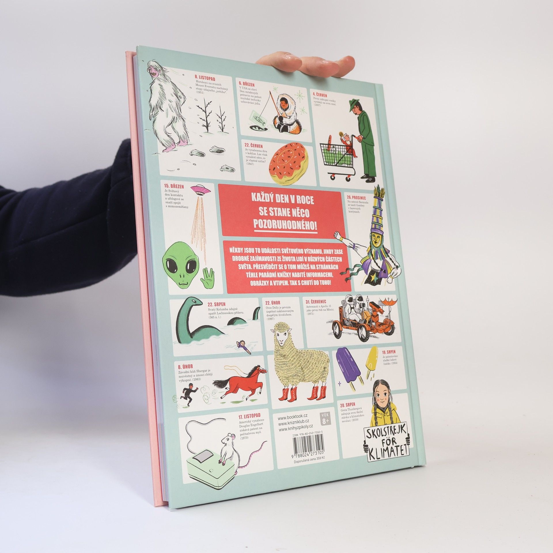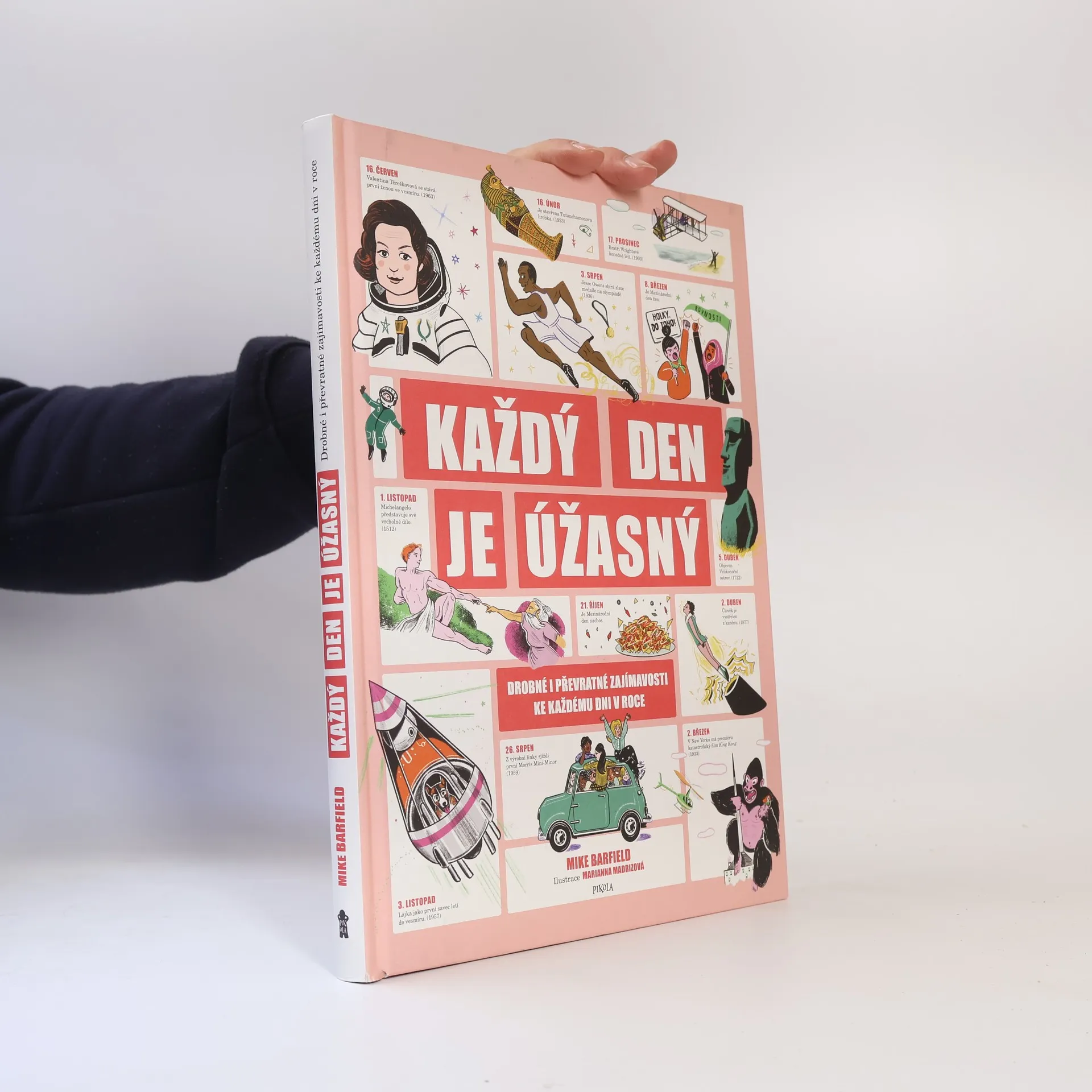 Každý den v roce se stane něco pozoruhodného. Někdy jsou to události světového významu, jindy zase drobné zajímavosti nebo zážitky ze života lidí v různých částech světa. Kdy se do vesmíru dostala první žena? Kdy se americkému řidiči kamionu podařilo vznést do vzduchu pomocí heliových balonků a vydržet tam celých 45 minut? Kdy se slaví mezinárodní den nachos a co zajímavého se stalo v den, kdy ses narodil právě ty? Zjisti to na stránkách téhle parádní knížky nabité informacemi, obrázky a vtipem. S chutí do toho! Kniha je určena dětem od 8 let.