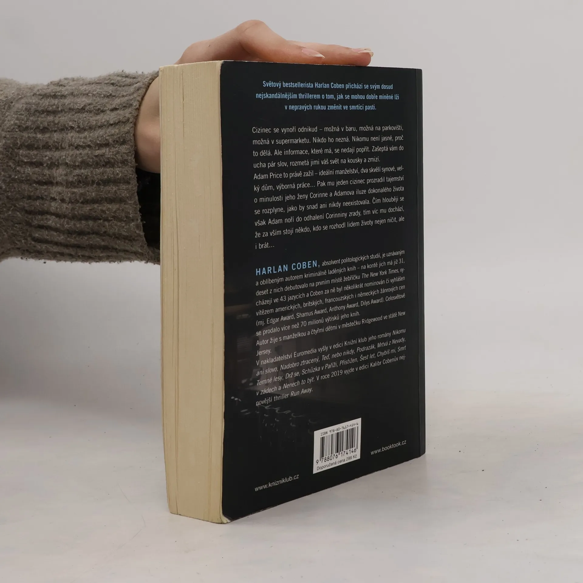 Světový bestsellerista Harlan Coben přichází se svým dosud nejskandálnějším thrillerem o tom, jak se mohou dobře míněné lži v cizích rukou změnit ve smrtící pasti. Cizinec se vynoří odnikud – možná v baru, možná na parkovišti, možná v supermarketu. Nikdo ho nezná. Nikomu není jasné, proč to dělá. Ale informace, které má, se nedají popřít. Zašeptá vám do ucha pár slov, rozmetá jimi váš svět na kousky a zmizí. Adam Price to právě zažil – ideální manželství, dva skvělí synové, velký dům, výborná práce…Pak mu jeden cizinec prozradil tajemství o minulosti jeho ženy Corinne a Adamova iluze dokonalého života se rozplyne, jako by snad ani nikdy neexistovala. Čím hlouběji se však Adam noří do odhalení Corinniny zrady, tím víc mu dochází, že za vším stojí někdo, kdo se rozhodl některým lidem životy nejen ničit, ale i brát…