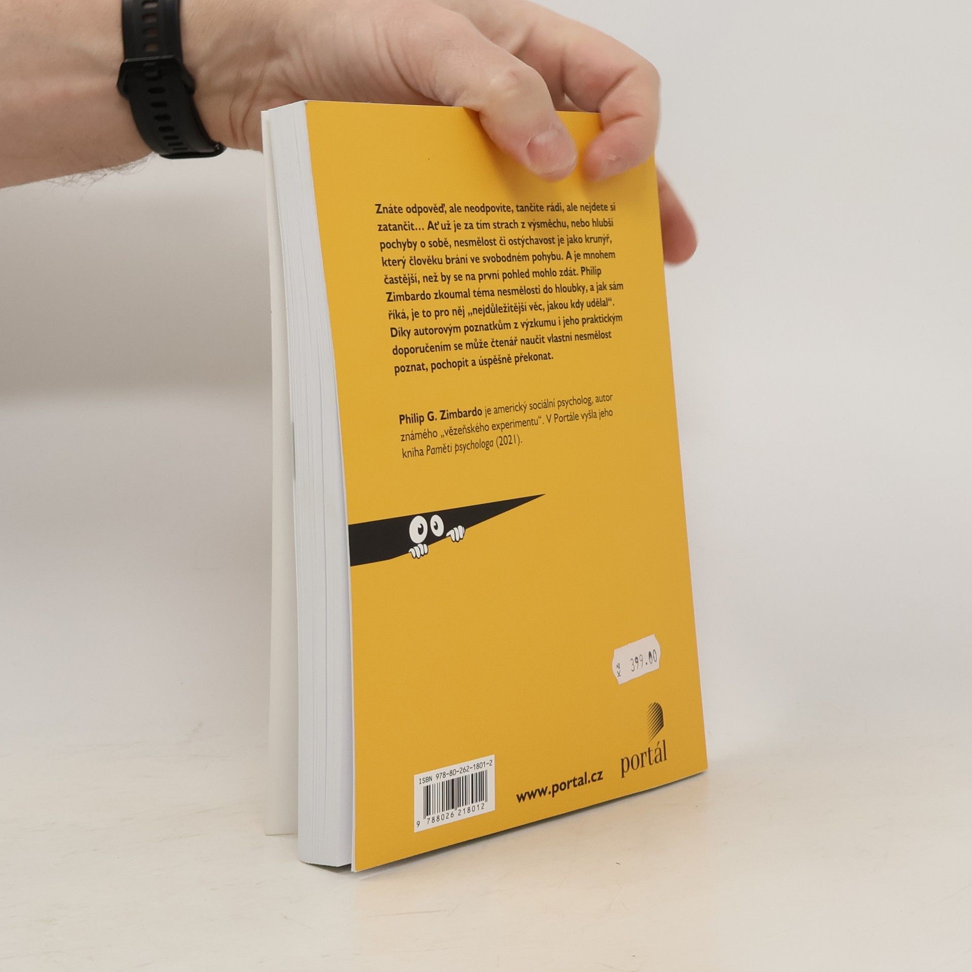 Znáte odpověď, ale neodpovíte, tančíte rádi, ale nejdete si zatančit… Ať už je za tím strach z výsměchu nebo hlubší pochyby o sobě, nesmělost či stydlivost je jako krunýř, který člověku brání ve svobodném pohybu. A je mnohem častější, než by se na první pohled mohlo zdát. V návaznosti na vězeňskou studii Philip Zimbardo zkoumal do hloubky téma nesmělosti a sám říká, že je to pro něj „nejdůležitější věc, jakou kdy udělal.“ Díky autorovým poznatkům z výzkumu i jeho praktickým doporučením se může čtenář naučit vlastní nesmělost poznat, pochopit a překonat. Philip G. Zimbardo je americký sociální psycholog, autor známého „vězeňského experimentu“. V Portále vyšel rozhovor s ním Philip Zimbardo: Paměti psychologa.