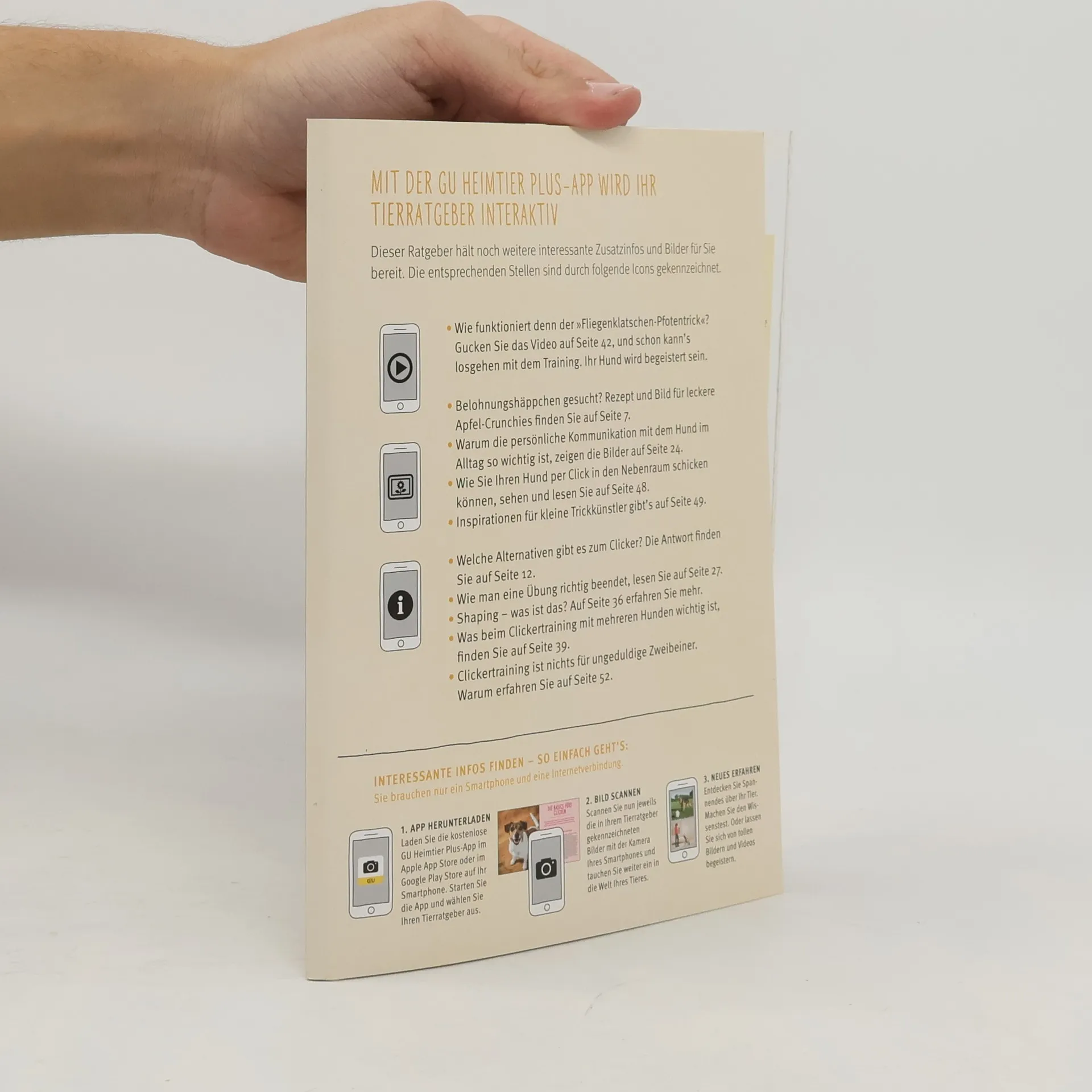 Wenn Sie mit dem Clicker arbeiten, kann Ihr Hund selbst und ohne Zwang herausfinden, was Sie von ihm möchten. Diese reizvolle Vorstellung lässt sich leicht in die Tat umsetzen. Und das Tolle daran: Clickertraining macht dem Hund Spaß, gibt es doch anfangs nach jedem Click eine Belohnung für richtiges Verhalten. Und mit der Zeit bekommt allein das Klick-Geräusch für Ihren Hund dieselbe Bedeutung wie das Leckerli selbst. Also ran an das Erlernen dieser Zaubermethode, die nicht nur bei der Erziehung Ihres Vierbeiners hilfreich ist, sondern auch beim Trainieren kleiner Kunststücke den gewünschten Erfolg bringt. Die erfahrene Hundetrainerin Katharina Schlegl-Kofler gibt Ihnen in diesem GU Tierratgeber Hunde - Clickertraining eine genaue Anleitung mit praktischen Übungen fürs Clickern. Zahlreiche Tipps helfen, Fehler von Anfang an zu vermeiden und das Training für Hund und Mensch gleichermaßen spannend zu gestalten.