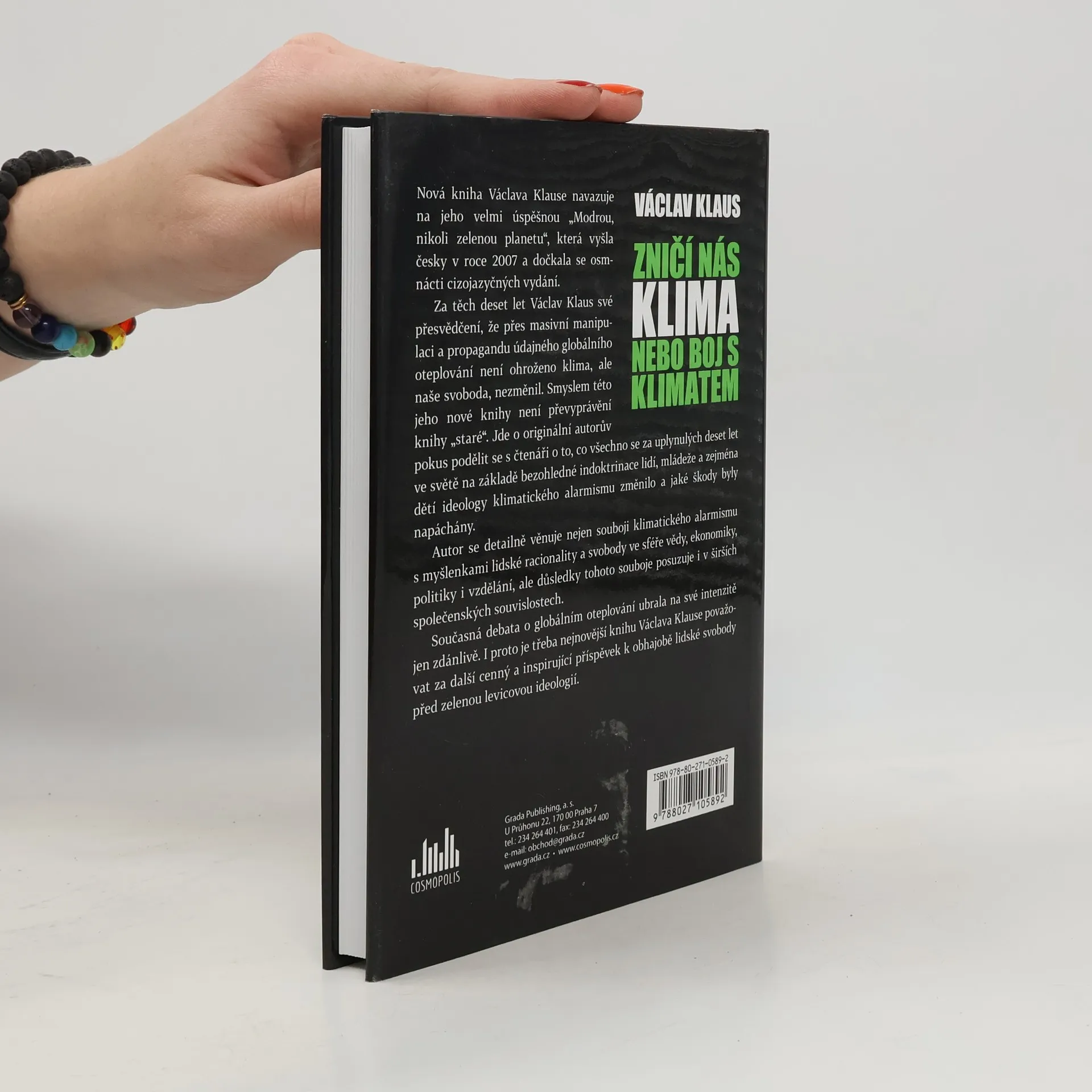 Nová kniha Václava Klause navazuje na jeho velmi úspěšnou „Modrou, nikoli zelenou planetu“, která vyšla česky v roce 2007 a dočkala se osmnácti cizojazyčných vydání. Za těch deset let Václav Klaus své přesvědčení, že přes masivní manipulaci a propagandu údajného globálního oteplování není ohroženo klima, ale naše svoboda, nezměnil. Smyslem této jeho nové knihy není převyprávění knihy „staré“. Jde o originální autorův pokus podělit se s čtenáři o to, co všechno se za uplynulých deset let ve světě na základě bezohledné indoktrinace lidí, mládeže a zejména dětí ideology klimatického alarmismu změnilo a jaké škody byly napáchány. Autor se detailně věnuje nejen souboji klimatického alarmismu s myšlenkami lidské racionality a svobody ve sféře vědy, ekonomiky, politiky i vzdělání, ale důsledky tohoto souboje posuzuje i v širších společenských souvislostech. Současná debata o globálním oteplování ubrala na své intenzitě jen zdánlivě. I proto je třeba nejnovější knihu Václava Klause považovat za další cenný a inspirující příspěvek k obhajobě lidské svobody před zelenou levicovou ideologií.